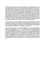 Landtag von Sachsen-Anhalt Drucksache 7/6852 13.11.2020 Antwort der Landesregierung auf eine Kleine Anfrage zur schrift- lichen Beantwortung Abgeordneter Thomas Höse (AfD) Straftaten und Ordnungswidrigkeiten in Wittenberg Kleine Anfrage - KA 7/4049 Vorbemerkung des Fragestellenden: In meinem Wahlkreis häufen sich die Beschwerden von Bürgern, die sich in ihrem Wohngebiet in Wittenberg nicht mehr sicher beziehungsweise belästigt fühlen. So hätten sich insbesondere der Platz der Demokratie, die Kreuzstraße, der Pferdestall, die Wallanlagen und der Hauptbahnhof zu Schwerpunkten entwickelt, an denen es vermehrt zu Ordnungswidrigkeiten und Straftaten kam, die das Sicherheitsempfinden der Wittenberger Bürger stark beeinträchtigen. Antwort der Landesregierung erstellt vom Ministerium für Inneres und Sport Zu wie vielen Einsätzen durch Polizei und Ordnungsamt ist es seit 2015 in der Lutherstadt Wittenberg infolge Straftaten und Ordnungswidrigkeiten gekom- men, die von Personen mit Migrationshintergrund, Asylbewerbern und Perso- nen mit abgelehntem Asylantrag begangen wurden? Bitte schlüsseln Sie nach Jahren und Art der Ordnungswidrigkeit beziehungs- weise Straftat auf. Die polizeiliche Einsatzdokumentation erfolgt im Integrierten Vorgangsbearbeitungs- system für die Polizei des Landes Sachsen-Anhalt (IVOPOL). Zur Einsatzdokumenta- tion im IVOPOL erfolgt keine Erfassung der angefragten personenbezogenen Krite- rien. Die Gesamtzahl an polizeilichen Einsätzen im Zusammenhang mit Straftaten und Ordnungswidrigkeiten, die von Personen mit Migrationshintergrund, Asylbewer- bern und Personen mit abgelehntem Asylantrag in der Lutherstadt Wittenberg be- gangen wurden, kann daher nicht beauskunftet werden. (Ausgegeben am 13.11.2020)