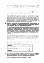 2 In der Anlage sind die erfassten Fälle von Fahrraddiebstahl für das Jahr 2019 nach kleinstmöglicher Ebene aufgeschlüsselt dargestellt. Bei 29 Fällen wurde ein unbekannter Tatort erfasst; diese sind in der Anlage entsprechend nicht be- rücksichtigt. 3. Verfolgt die Landesregierung eine gesonderte Strategie gegen Fahrrad- diebstahl? Welche Maßnahmen plant die Landesregierung, um die Zahl der Fahrraddiebstähle in Sachsen-Anhalt zu senken? Die Landeregierung bekämpft das Phänomen des Fahrraddiebstahls sowohl mit repressiven als auch mit präventiven Maßnahmen. So werden in den jeweiligen Zuständigkeitsbereichen der Polizeiinspektionen regelmäßig und zielgerichtet polizeiliche Fahrradkontrollen sowie delikts- und schwerpunktbezogene Ermitt- lungen durchgeführt. Ferner werden Präventionsveranstaltungen ausgerichtet, um die Bevölkerung im Rahmen der Präventions- und Öffentlichkeitsarbeit für eine ausreichende Sicherung von Fahrrädern zu sensibilisieren. 4. Wie viele Termine zur Fahrradcodierung haben die Polizeidirektionen im Jahr 2019 angeboten und wie viele Fahrräder wurden auf diese Weise co- diert? Bitte nach Jahren und Dienststellen aufschlüsseln. Es konnten bislang bundesweit keine Zusammenhänge zwischen der Anzahl an Terminen zur Fahrradcodierung bzw. der Anzahl der codierten Fahrräder und den Fallzahlen des Fahrraddiebstahls sowie dessen Aufklärungsquoten nach- gewiesen werden. Insofern ist die Codierung ein Hilfsmittel, um bei Auffinden eines gestohlenen Fahrrades den Eigentümer eindeutig zuordnen zu können, verhindert aber ohne ausreichende Sicherung eines Fahrrades dessen Dieb- stahl nicht. Andere Bundesländer sind bereits dazu übergegangen, keine Fahrradcodierun- gen mehr durch die Polizei anzubieten, sondern dies ausschließlich Dritten (ADFC, Händler etc.) zu überlassen. Vor dem Hintergrund der Erkenntnisse zu Fahrradcodierungen hat die Landespolizei im Jahr 2019 solche nur noch ver- einzelt angeboten. In der folgenden Tabelle sind die Termine von Fahrradcodierungen im Jahr 2019 nach Dienststellen aufgeschlüsselt dargestellt. Dienststelle Termine Fahrräder Polizeirevier Stendal 2 24 Polizeirevier Jerichower Land 3 78 insgesamt 5 102 5. In wie vielen Fällen konnten gestohlene Fahrräder im Jahr 2019 aufgrund einer Fahrradcodierung den Eigentümerinnen und Eigentümern überge- ben werden? Bitte nach Jahren und Dienststellen aufschlüsseln. In den Polizeiinspektionen existieren darüber keine Angaben.