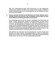3 Nein. Der Landesregierung liegen keine Erkenntnisse vor, dass Aufklärungs- pflichten durch Ärztinnen und Ärzte nicht wahrgenommen wurden. Verfahren in diesem Zusammenhang sind der Landesregierung und der Ärztekammer Sach- sen-Anhalt nicht bekannt. 4. Welche konkreten Schritte hat das Ministerium für Arbeit, Soziales und In- tegration bereits unternommen, über die Gefahren bei der Gabe von Cyto- tec als Mittel zur Einleitung der Geburt, hinzuweisen? Die Landesregierung hat den als Anlage 2 beigefügten Rote-Hand-Brief des BfArM: „Cytotec (Misoprostol) -Risiken im Zusammenhang mit einer Anwen- dung zur Geburtseinleitung außerhalb der Zulassung („off-label-use“)“ vom 16.3.2020 der Apothekerkammer Sachsen-Anhalt, der Ärztekammer Sachsen- Anhalt und der Krankenhausgesellschaft Sachsen-Anhalt zur Verteilung an die betreffende Ärzteschaft zur Kenntnis gegeben. Darüber hinaus sind die Kran- kenhaus- und krankenhausversorgenden Apotheken in Sachsen-Anhalt und der Hebammenverband Sachsen-Anhalt gesondert informiert worden. Das Verfahren der Information über Arzneimittelrisiken und dem Hinweis einer korrekten und damit sicheren Arzneimitteltherapie mit Hilfe von Rote-Hand- Briefen, die von der für die Pharmakovigilanz zuständigen Bundesoberbehörde erstellt werden, hat sich aus Sicht der Landesregierung bewährt.