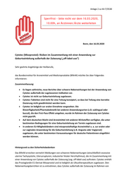 Anlage 2 zu KA 7/3538 Sperrfrist – bitte nicht vor dem 16.03.2020, 10.00h, an Ärztinnen/Ärzte weiterleiten TUESDAY, 10 MARCH 2020, 10:00 HRS CET Bonn, den 16.03.2020 Cytotec (Misoprostol): Risiken im Zusammenhang mit einer Anwendung zur Geburtseinleitung außerhalb der Zulassung („off-label-use“) Sehr geehrte Angehörige der Heilberufe, das Bundesinstitut für Arzneimittel und Medizinprodukte (BfArM) möchte Sie über Folgendes informieren: Zusammenfassung: Es liegen zahlreiche, neue Berichte über schwere Nebenwirkungen bei der Anwendung von Cytotec außerhalb der zugelassenen Indikation vor. Cytotec ist nicht zur Geburtseinleitung zugelassen. Cytotec-Tabletten sind nicht für eine Teilung konzipiert, so dass bei Teilung eine korrekte Dosierung nicht gewährleistet werden kann. Cytotec ist lediglich zur oralen Einnahme vorgesehen. Die Bioverfügbarkeit/Pharmakokinetik bei anderen Anwendungsarten (z.B. sublingual oder buccal), die den First-Pass-Effekt umgehen, wurde im Rahmen der Zulassung von Cytotec nicht geprüft. Auf dem deutschen Markt sind Arzneimittel mit anderen Wirkstoffen verfügbar, die unter bestimmten Bedingungen für eine Geburtseinleitung am Termin zugelassen sind. In anderen EU-Mitgliedsländern sind misoprostolhaltige Arzneimittel u. a. zur oralen oder zur vaginalen Anwendung für die Geburtseinleitung (z.B. Angusta oder Vagiprost) zugelassen, die unter bestimmten Voraussetzungen für deutsche Patientinnen eingeführt werden können. Hintergrund zu den Sicherheitsbedenken Das BfArM erreichen vermehrt Meldungen von schweren Nebenwirkungen (einschließlich exzessive uterine Tachysystolie, Uterusrupturen; reduzierter fetaler Herzrhythmus), die im Zusammenhang mit einer Anwendung von Cytotec außerhalb der Zulassung (sog. off-label-use) auftraten. Cytotec enthält das Prostaglandin E1-Derivat Misoprostol und ist lediglich als Ulkustherapeutikum zugelassen. Den Nebenwirkungsberichten ist zu entnehmen, dass Cytotec außerhalb der Zulassung im Rahmen von