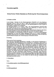Formulierungshilfe Entwurf eines Vierten Gesetzes zur Änderung des Tierschutzgesetzes A. Problem und Ziel In $ 6 Absatz 1 Nummer 2a des Tierschutzgesetzes (TierSchG) Ist für das Kastrieren männlicher Ferkei im Alter von unter 8 Tagen eine Ausnahme vom Amputationsverbot festgeschrieben. Eine generelle Ausnahme von der Betäubungspflicht für diesen Eingriff ist in 8 5 Absatz 3 TierSchG nicht vorgesehen, Die Übergangsregelung in $ 21 Absatz 1 Satz 1 des Tierschutzgesetzes (Tier$ch6) lässt den ‚Eingriff noch bis zum 31. Dezember 2018 ohne Betäubung zu. Danach muss die Kastration unter wirksamer Schmerzausschaltung erfolgen. Eine Verschiebung der Frist ist zwingend erforderlich, da die derzeit verfügbaren Alternativen zur betäubungslosen Kastratiorı den Anforderungen der Praxis’nicht gerecht werden, Es ist notwendig, die erforderlichen Schritte zu ergreifen, um aus der betäubungslosen Ferkelkästration so schnell wie möglich, spätestens jedoch zum 31.12.2020, auszusteigen. Auf diesem Weg brauchen die deutschen Ferkelerzeuger Unterstützung. Denn wir wollen die gesellschaftliche Akzeptanz der Ferkelerzeugung in Deutschland stärken. B. Lösung Änderung des Tierschutzgesetzes,. Zudem sind alle notwendigen Maßnahmen zu ergreifen, um die deutschen Ferkelerzeuger in dem verlängerterı Übergangszeitraum bei der Umstellung zu unterstützen. Dabei kommt es insbesondere darauf an, die Maßnahmen umzusetzen, die in der Gesetzesbegründung und . dem Entschließungsantrag, der diesem Gesetzentwurf beigefügt ist, genannt werden. Beispielsweise ist es unerlässlich, dass das Tierarzneimittel Isofluran unverzüglich nach . Inkrafttreten dieses Gesetzes eine tierarzneimittelrechtliche Zulassung erhält, Zudem ist öbanfalts unverzüglich, spätestens jedoch bis zum 31. Mai 2019 dem Bundestag eine Verordnung zuzuleiten, die die Durchführung der Isoflurannarkose dem geschulten Landwirt ermöglicht. Die Betriebe sind bei der Umstellung auf altemative Verfahren sowie bei der C: Alternativen - | Keine. D. Haushaltsausgaben ohne Erfüllungsaufwand Keine. - E, Erfüllungsaufwand
