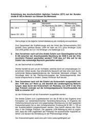 2 Entwicklung des durchschnittlich täglichen Verkehrs (DTV) auf der Bundes- straße B 180 im Bereich von Stössen bis Meineweh Bundesstraße B 180 Jahr Meineweh - AS Naumburg - AS Naumburg (Zst 3091) Stössen (Zst 3092) Kfz / 24 h 2010 8.116 9.416 2015 5.330 8.169 davon SV / 24 h 2010 1.521 930 2015 590 759 Demzufolge ist die tägliche Verkehrsbelastung als rückläufig einzuschätzen. Zum Gesamtwert der Kraftfahrzeuge wird der Anteil des Schwerverkehrs (SV) gezählt. Dazu gehören Busse, LKW mit mehr als 3,5 t ohne Anhänger (LoA) und LKW größer als 3,5 t mit Anhänger und Sattelzüge (LZ). 2. Dem Vernehmen nach soll eine direkte Zufahrt zum Gewerbegebiet auf die B 180 zwischen der Anschlussstelle Naumburg der BAB 9 und der Orts- durchfahrt Pretzsch geschaffen werden? Trifft dies zu? Wie soll für die Zufahrt das notwendige Baurecht geschaffen werden? Ja, der Sachverhalt ist zutreffend. Hierbei handelt es sich um ein Vorhaben, welches durch ein ortsansässiges Un- ternehmen initiiert wurde. Das erforderliche Baurecht soll über eine noch durch- zuführende Bebauungsplanänderung der Gemeinde Meineweh erfolgen. Als Grundlage dafür ist der Flächennutzungsplan der Verbandsgemeinde Wet- hautal entsprechend zu ändern. Dieses Verfahren läuft derzeit. 3. Dem Vernehmen nach soll die Zufahrt als Kreisverkehr ausgestaltet wer- den. Trifft dies zu? Wenn ja, wie beurteilt die Landesregierung Befürch- tungen, dass durch den Kreisverkehr ein Rückstau von LKW in die Orts- lage Pretzsch und/oder auf die lichtsignalgesteuerte Anschlussstelle der BAB zu erwarten ist? Ja, der Knotenpunkt soll als Kreisverkehr ausgebildet werden. Die direkte Zufahrt zum Logistikstandort von der B 180 ist das Ergebnis einer Konzeption zur verkehrstechnischen Variantenuntersuchung. Im Ergebnis der Verkehrsuntersuchung kann eine gegenseitige Überstauung von dem geplanten Kreisverkehrsplatz bis zu dem lichtsignalisierten Knotenpunkt B 180 / L 190 an der Autobahnabfahrt ausgeschlossen werden. Dies betrifft ebenso den Rück- stau in die Ortslage Pretzsch. Die geplante LKW-Abfertigung wird so organi- siert, dass die LKW ungehindert den Parkplatz mit ausreichender Kapazität an- fahren und danach die Anmeldung an der Pförtneranlage erfolgt. Der Kreisverkehrsplatz weist eine sehr hohe Leistungsfähigkeit auf.