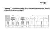 Anlage 1 Übersicht – Einnahmen aus der land- und forstwirtschaftlichen Nutzung im Landkreis Jerichower Land Oberflächenwasser Grundwasser Einnahmen Einnahmen EHJ tats. Was- tats. Was- Einnahmen tats. Was- Einnahmen tats. Was- Beregnung, Beregnung, sermengen sermengen Kühlung sermengen Fischzucht sermengen Berieselung Berieselung in m³/a in m³/a in € in m³/a in € in m³/a in € in € 2012 0 0 4.565,10 228.255 0 0 0 0 2013 57,12 11.425 9.501,48 475.074 0 0 0 0 2014 60,00 12.000 8.503,64 425.182 0 0 0 0 2015 105,00 21.000 9.695,47 484.774 0 0 0 0 2016 10,00 2.000 15.764,29 788.214 0 0 0 0 2017 3,30 660 15.289,16 764.458 0 0 0 0