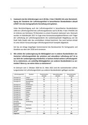 2 1. Inwieweit sind die Anforderungen von § 28 Abs. 4 Satz 3 RettDG LSA unter Berücksich‐ tigung der Standorte der Luftrettungsmittel in benachbarten Bundesländern aktuell erfüllt? Um eine kartographische Darstellung wird gebeten. Unter Berücksichtigung auch der Luftrettungsmittel in benachbarten Bundesländern sollte ein Luftrettungsmittel des Luftrettungsdienstes nach § 28 Abs. 4 Satz 3 RettDG LSA im Umkreis von höchstens 70 Kilometern zu einem Einsatzort stationiert sein. Demnach wurden im Kalenderjahr 2017 im Zuge eines Konzessionsvergabeverfahrens vom Träger der Luftrettung als Luftrettungsstandorte die Landeshauptstadt Magdeburg und die Stadt Halle (Saale) oder das unmittelbare Umland bestimmt. Das Land Sachsen‐Anhalt ist unter diesen Voraussetzungen luftrettungstechnisch komplett abgedeckt. Auf das als Anlage beigefügte Kartenmaterial des Bundesamtes für Kartographie und Geodäsie aus dem Jahr 2018 wird verwiesen. 2. Wie schätzt die Landesregierung die Abhängigkeit von in anderen Bundesländern sta‐ tionierten Luftrettungsmitteln der primären und sekundären Luftrettung ein? Ist es aus Sicht der Landesregierung erforderlich, in Sachsen‐Anhalt weitere Luftrettungsmit‐ tel zu stationieren, um zukünftig Abhängigkeiten von anderen Bundesländern zu ver‐ meiden? Wenn ja, wo wären diese zu stationieren? Im Zeitraum vom 1. Oktober 2020 bis 31. März 2021 sind die nachstehenden Luftret‐ tungseinsätze mit Luftrettungsmitteln aus anderen Bundesländern geflogen worden: Luftrettungsmittel Standort Primäreinsätze Sekundäreinsätze Gesamteinsätze (Anzahl) (Anzahl) (Anzahl) Christoph 19 Uelzen 15 3 18 Christoph 30 Wolfenbüttel 86 0 86 Christoph 35 Brandenburg 11 0 11 (Havel) Christoph 37 Nordhausen 53 3 56 Christoph 39 Perleberg 34 0 34 Christoph 44 Göttingen 1 0 1 Christoph 46 Zwickau 1 0 1 Christoph 61 Dölzig 137 7 144 Christoph 62 Bautzen 0 1 0 Christoph 63 Dölzig 124 8 132 Christoph 70 Jena 51 1 52 Christoph Berlin Berlin 2 3 5 Christoph Senftenberg 0 3 3 Brandenburg Christoph Hannover 0 6 6 Niedersachsen Christoph Bad Berka 7 8 25 Thüringen SAR 87 Holzdorf 2 4 6 Insgesamt 524 57 581