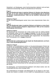 3 Studienfach- und Studiengang- sowie Hochschulwechsler statistisch nicht als Studi- enabbrecher berücksichtigt, sondern als Studierende der Hochschule. Frage 4: Wie viele Studierende haben im gleichen Zeitraum ihr Studium ohne Abschluss beendet, um an einer anderen Hochschule im Bundesgebiet oder im Ausland ein Studium wiederaufzunehmen? Bitte auf die einzelnen Hochschulen auf- schlüsseln. Antwort zu Frage 4 Gemäß Hochschulstatistikgesetz werden hierzu keine entsprechenden Daten erho- ben. Frage 5: Wie viele Studierende haben im gleichen Zeitraum ein Studium an einer Hoch- schule in Sachsen-Anhalt erfolgreich abgeschlossen? Bitte auf die einzelnen Studiengänge aufschlüsseln. Antwort zu Frage 5: Die Absolventen der Hochschulen des Landes werden durch die amtliche Statistik pro Studienjahr erfasst und sind in Anlage 2 dargestellt. Für das Jahr 2018 liegen noch keine amtlichen Daten vor. Eine Erfassung der Daten bezogen auf Studiengän- ge wird in der amtlichen Hochschulstatistik nicht vorgenommen. Die Absolventen nach Fächergruppen sind in Anlage 3 dargestellt. Frage 6: Wie beurteilt die Landesregierung die Anzahl der Studienabbrüche und Hoch- schul- sowie Studiengangswechsel? Antwort zu Frage 6: Im Rahmen von Exmatrikulationen werden nur die personenbezogenen Gründe (vgl. Gründe für die Exmatrikulation Schlüssel 7.1 des Schlüsselverzeichnisses: Exmatri- kulation aufgrund landesrechtlicher Bestimmungen; Exmatrikulation aufgrund landes- rechtlicher Bestimmungen; Unterbrechung des Studiums; Beendigung des Studiums ohne Prüfung, da keine mehr möglich; Hochschulwechsel; Antritt Freiwilligendienst; Endgültiger Abbruch des Studiums; Streichung durch die Hochschule wegen fehlen- der Rückmeldung bzw. fehlender Krankenversicherung; Beendigung des Studiums nach endgültig nicht bestandener Prüfung/Vorprüfung; Sonstige Gründe) erfasst. Hintergründe zum Abbruch mit Bezug auf das Studium oder das Studienfach werden in der Statistik nicht berücksichtigt. Die vorliegenden Zahlen belegen jeweils nur das Ausscheiden aus einem Studiengang zu einem Stichtag und lassen keine direkten Rückschlüsse auf die individuellen Entscheidungsgründe, die Studienwahl, die Quali- tät des Studiums oder des Studiengangs etc. zu. Erst in Kombination mit diesen In- formationen könnten Rückschlüsse auf die Leistungsmessung der Hochschule gezo- gen werden. Da Studiengang- und Hochschulwechsel statistisch nicht erfasst werden, kann die Landesregierung hierzu keine Aussage treffen. Die Landesregierung ist bestrebt, gute Bedingungen für ein Studium an den Hoch- schulen des Landes zu schaffen, um die Anzahl von Studienabbrechern so gering
