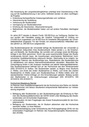 5 Die Verwendung der Langzeitstudiengebühren unterliegt einer Zweckbindung in Be- zug auf die Qualitätssicherung in der Lehre. Gefördert werden vor allem nachfolgen- de Projekte: Entwicklung fachspezifischer Zulassungsmethoden und -verfahren Intensivierung der Ausbildung Verkürzung der Studienzeiten Verringerung von Studienabbrüchen Erhöhung der Absolventen- /Absolventinnenquote Maßnahmen, die Modellcharakter haben und auf andere Fakultäten übertragbar sind Im Jahre 2017 standen in diesem Fonds 100.000 Euro zur Verfügung. Darüber hin- aus wurden den Fakultäten analog der Vorjahre Tutorienmittel im Umfang von 214.000 Euro zugewiesen und 30.000 Euro für erweiterte Öffnungszeiten der Univer- sitätsbibliothek eingesetzt. Für den Einsatz von wissenschaftlichen Hilfskräften wer- den jährlich ca. 290.000 Euro aufgewendet. Das Studierendenpanel der Universität befragt die Studierenden der Universität zu verschiedenen Zeitpunkten ihres Studienverlaufs. Dabei werden u. a. die Erwartun- gen und Bedarfe, der Studienalltag, die Lernstile und Lernwege sowie die Bildungs- erträge in den Blick genommen. Durch das quasi experimentelle Design des Studie- rendenpanels können bspw. die Auswirkungen verschiedener Maßnahmen hoch- schulischer Qualitätsentwicklung untersucht werden. Gleichzeitig ist es möglich, be- günstigende Faktoren des Studienerfolgs bzw. Risikofaktoren des Studienabbruchs zu identifizieren und daraus Interventionsmaßnahmen abzuleiten. Besondere Be- rücksichtigung finden in den Analysen manifeste und latente Heterogenitätskriterien. Das Studierendenpanel befindet sich an der Hochschule seit dem Wintersemester (WS) 2014/2015 im Aufbau. Die Studierenden werden zu Beginn ihres Studiums (1. Welle), zum Ende des ersten Studienjahres (2. Welle), zum Ende des zweiten Studienjahres (3. Welle) sowie zum Studienabschluss (4. Welle) mittels einer teil- standardisierten Online-Umfrage um ihre Einschätzungen gebeten. Bislang wurden drei Startkohorten in die Untersuchungen einbezogen (WS 2014/2015, WS 2015/2016, WS 2016/2017). Hochschule Magdeburg-Stendal Im Rahmen ihres Qualitätsmanagements hat die Hochschule eine Reihe von Aktivitä- ten unternommen und daraus resultierend entsprechende Maßnahmen zur Verbes- serung eingeleitet: Befragung aller Studierenden zu den Studienbedingungen als Erhebung im Rah- men des Studienqualitätsmonitors der DZHW GmbH unter Beteiligung des Studie- rendenrates und mit konkreten Ergebnissen; Lehrevaluation mit dem Fragebogen des Grazer Evaluationsmodells für den Kom- petenzerwerb; Befragung von Studierenden, die ihr Studium abbrechen oder die Hochschule wechseln wollten, zu ihren Motiven; Absolventenbefragung (unter Einbeziehung des Prüfungsjahrgangs 2016) mit neu entwickeltem Fragebogen im Rahmen des Kooperationsprojekts Absolventenstu- dien (KOAB);