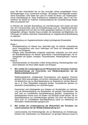 2 gung. Mit dem Ausscheiden der vor den neunziger Jahren ausgebildeten Feuer- wehrangehörigen ist es zunehmend wichtiger, die jetzigen Führungskräfte entspre- chend fortzubilden. Dies bietet das Land am Institut für Brand- und Katastrophen- schutz Heyrothsberge an. Diese Ausbildung ist maßgeblich dafür, dass in den Feu- erwehren der Bedarf an moderner Zusatzausstattung der Einsatzfahrzeuge festge- stellt und publiziert wird. Im Rahmen der zentralen Beschaffung von Löschfahrzeugen wird bereits seit dem Jahr 2013 berücksichtigt, dass die Einsatzfahrzeuge auch zur Vegetationsbrandbe- kämpfung geeignet sind und über ein hierfür geeignetes Spektrum an Lösch- und Ar- beitsgeräten verfügen. Darüber hinaus erhalten die Gemeinden die Möglichkeit, ihre Fahrzeuge mit weiterer optionaler Zusatzbeladung zur Vegetationsbrandbekämpfung zu ergänzen. Die Bekämpfung von Vegetationsbränden erfolgt nachfolgender Einsatztaktik: Phase 1: - Brandbekämpfung mit Wasser bzw. Netzmittel (ggf. mit örtlicher Unterstützung durch Feuerpatschen oder durch Aufbringen von Sand mit Arbeitsgeräten wie Spaten und Schippen), - Anlegen eines Wundstreifens (möglichst maschinell, unterstützt von nicht durch die Brandbekämpfung mit Wasser gebundenen Feuerwehrangehörigen mit Ar- beitsgeräten wie Spaten, Schippen, Feuerwehräxten, Wiedehopfhauen, Feuerre- chen) Phase 2: - Nachlöscharbeiten an Glutnestern mittels Schlauchleitung, Kleinlöschgeräten oder durch Abdecken mit Sand mittels Spaten und Schippen. 1. Wie schätzt die Landesregierung die Wirksamkeit des Einsatzes einfacher Spezialwerkzeuge wie Feuerrechen und Waldbrandpatschen bei der Waldbrandbekämpfung ein? Waldbrandpatschen, richtigerweise Feuerpatschen, sind geeignet, Flammen geringer Höhe auszuschlagen und können unterstützend zur Brandbekämpfung mit Strahlrohren gut zur Brandbekämpfung von Bodenfeuern leichten Bewuch- ses (z. B. Gras, Stoppelfeld) eingesetzt werden. Feuerpatschen gehören zur optionalen Zusatzbeladung von Löschfahrzeugen. Feuerrechen sind Arbeitsgeräte zum Anlegen von Wundstreifen zur Verhinde- rung der Brandausbreitung von Bodenfeuern mit geringer Flammenhöhe. Sie sind nicht zur unmittelbaren Brandbekämpfung geeignet. Vergleichbare Ar- beitsergebnisse können auch mit Spaten und Schippen erzielt werden, die zur Standardbeladung von Löschfahrzeugen gehören und durch die Nutzung von Sand auch zur unmittelbaren Brandbekämpfung sowie zur Abdeckung von Glutnestern multifunktioneller geeignet sind. 2. Wie schätzt die Landesregierung die Wirksamkeit des Einsatzes von Löschrucksäcken bei der Waldbrandbekämpfung ein? Löschrucksäcke sind Kleinlöschgeräte, die zur Bekämpfung von Entstehungs- bränden bzw. Kleinbränden von Bodenfeuern mit geringem Bewuchs sowie im