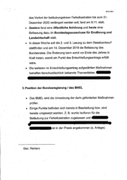SEITE2VON2 das Verbot der betäubungslosen Ferkelkastration bis zum 31. _ Dezember 2020 verlängert werden soll, fand am 9.11. statt. ® Gestern fand eine öffentliche Anhörung und heute eine | Befassung dazu im Bundestagsausschuss für Ernährung und Landwirtschaft statt. ® In dieser Woche soll die 2. und 3. Lesung zu dem Gesetzentwurf stattfinden und am 14..Dezember 2018 die Befassung des . Bundesrates. Die Änderung: kann somit vor Ende des Jahres in Kraft treten, womit ein Punkt des Entschließungsantrags erfüllt | wäre. | nn ‘+ Die weiteren | im Entschließungsantrag aufgezählten Maßnahmen betreffen tierschutzfachlich bekannte Themenfelder, NEED GEHE 3. Position. der Bundesregierung / des BMEL Das BMEL wird die Umsetzung der darin geforderten Maßnahmen ‚prüfen, | 2 | « Einige Punkte befinden sich bereits in Bearbeitung bzw. sind bereits umgesetzt worden. Z. B. wurde Isofluran für die | Betäubung zur Ferkelkastration zugelassen und . (EEE ist in der Praxis angekommen (s. Anlage). . unerngre! Gez. Reiners