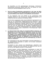 2 Die Anschaffung von fünf geländegängigen Dienstwagen, Arbeitsschutz- /Dienstkleidung, technischen Geräten sowie Hard- und Software zur Unter- stützung der Außendiensttätigkeiten stehen noch aus. 3. Sind die unteren Forstbehörden organisatorisch in der Lage, den Wald- schutz (§ 16 LWaldG) und die Wiederaufforstung innerhalb von drei Jah- ren (§ 10 LWaldG) auf der Vielzahl von Schadflächen durchzusetzen? Für den Waldschutz nach § 16 LWaldG ist das Landeszentrum Wald zuständige Behörde; für die Umsetzung der Wiederaufforstungspflicht (§ 10 LWaldG) sind dies die Landkreise und kreisfreien Städte. Es kann davon ausgegangen werden, dass die Behörden organisatorisch in der Lage sind, die entsprechende Aufgabenwahrnehmung abzusichern. Darauf hinzuweisen ist, dass die Frist zur Wiederaufforstung nach § 10 Abs. 1 LWaldG auf Antrag des Waldbesitzers verlängert werden kann, wenn die fristgemäße Aufforstung eine unzumutbare Härte darstellt. Eine solche unzumutbare Härte kann sich unter den Bedingungen des derzeitigen Schadflächenpotenzials beispielsweise aus fehlenden Arbeitskapazitäten oder fehlendem geeigneten Pflanzmaterial ergeben, sodass entsprechende Fristverlängerungen möglich (und wahrscheinlich) sind. 4. Im Kleinprivatwald fehlt häufig die forstwirtschaftliche Beziehung der Waldbesitzer zu ihrem Wald. Viele der Waldbesitzer sind (für die Forstbe- hörden) nicht ohne z. T. beträchtlichen Aufwand zu ermitteln, wenn bspw. die Angaben in den Liegenschaftsbüchern unvollständig oder die einge- tragenen Waldbesitzer bereits verstorben sind. Dieses Problem ist (erfah- rungsgemäß) dort sehr groß, wo Waldbesitz aus der Bodenreform ent- standen ist. Welche Maßnahmen plant die Landesregierung, um diese Si- tuation zu verbessern? Die Landesregierung sieht keine Notwendigkeit „besondere Maßnahmen“ zu der angesprochenen Problematik zu planen, da die derzeit vorhandenen Möglichkeiten ausreichen. Grundsätzlich ist aber zwischen den Fallgestaltungen: „Eigentümer nicht vorhanden, unbekannt oder nicht ermittelbar“ und „Eigentümer kann oder will sich nicht um sein Eigentum kümmern“ zu unterscheiden. Zunächst bestehen rechtliche Möglichkeiten, beispielsweise im ersten Fall durch Bestellung eines gesetzlichen Vertreters nach Art. 233 (§ 2 Abs. 3) EGBGB, im zweiten Fall durch Verwaltungszwang. Des Weiteren wären hier Maßnahmen und Möglichkeiten der Strukturverbesserung (beispielsweise Waldflurbereinigung), organisatorische Möglichkeiten (beispielsweise Bil- dung/Unterstützung/Förderung von forstwirtschaftlichen Zusammenschlüssen) oder die Wahrnehmung von Beratungs- und Betreuungsangeboten (bei- spielsweise durch Abschluss von Betreuungsverträgen) zu nennen, die durch das Land initiiert bzw. unterstützt werden.