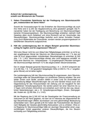 2 Antwort der Landesregierung erstellt vom Ministerium der Finanzen 1. Haben Finanzämter Spielräume bei der Festlegung von Säumniszuschlä- gen, insbesondere bei deren Höhe? Sowohl die Voraussetzungen für das Entstehen der Säumniszuschläge als auch ihre Höhe sind in § 240 der Abgabenordnung (AO) gesetzlich geregelt. Die Fi- nanzämter haben bei der Festlegung und Berechnung von Säumniszuschlägen keinerlei Ermessensspielraum. Die Säumniszuschläge entstehen vielmehr kraft Gesetzes allein durch Zeitablauf und ohne Rücksicht auf ein Verschulden des Steuerpflichtigen. Säumniszuschläge bedürfen auch keiner formellen Festset- zung durch Bedienstete der Finanzämter, sondern werden programmgesteuert im betreffenden Steuerkonto aufgezeichnet. 2. Hält die Landesregierung den im obigen Beispiel genannten Säumniszu- schlag für legitim und für angemessen? Warum? Wird eine Steuer nicht bis zum Ablauf des Fälligkeitstages entrichtet, so ist für je- den angefangenen Monat der Säumnis ein Säumniszuschlag von 1 % des auf volle 50 Euro abgerundeten rückständigen Steuerbetrages zu entrichten (§ 240 Abs. 1 S. 1 AO). Säumniszuschläge werden also nicht tagegenau ermittelt. Im Falle einer Säumnis von - beispielsweise - 12 (angefangenen) Monaten betragen die Säumniszuschläge demnach 12 % des abgerundeten Steuerrückstandes. Der im obigen Beispiel genannte Säumniszuschlag i. H. v. 24,50 € entspricht der in § 240 Abs. 1 S. 1 AO gesetzlich festgelegten Höhe (2.450 € x 1% x 1 angefan- gener Monat) und ist daher legitim. Die Landesregierung hält den Säumniszuschlag für angemessen, denn Säumnis- zuschläge sollen die Steuerpflichtigen zur pünktlichen Zahlung anhalten. Sie sind weder Zinsen noch Strafe, sondern stellen in erster Linie ein Druckmittel zur Durchsetzung fälliger Steuerforderungen dar und sind darüber hinaus auch eine Gegenleistung für das Hinausschieben der Zahlung und ein Ausgleich für den angefallenen Verwaltungsaufwand. Sie werden jedoch bei einer Säumnis bis zu 3 Tagen nicht erhoben (Schonfrist) und entstehen auch nicht bei den sog. steuer- lichen Nebenleistungen, wie z. B. Verspätungszuschlägen, Zinsen, Zwangsgel- der, Kosten etc. (§ 240 Abs. 2 u. 3 AO). Mit der Regelung des § 240 AO hat der Gesetzgeber der Finanzverwaltung ein Instrument an die Hand gegeben, mit dem sie im Interesse der Allgemeinheit fäl- lige Steuerforderungen effektiv durchsetzen und eine gleichmäßige Besteuerung sicherstellen kann. Denn gemäß § 85 AO haben die Finanzbehörden die Steuern nach Maßgabe der Gesetze gleichmäßig festzusetzen und zu erheben. Ohne ei- ne Regelung für Säumniszuschläge hätte ein säumiger Steuerzahler einen unge- rechtfertigten Vorteil gegenüber anderen Steuerpflichtigen, die ihre Steuern rechtzeitig zum Fälligkeitstag entrichten.