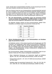 2 wurde. Gemäß dieser bundeseinheitlichen Richtlinie, ist eine Auswertung für den Be- reich eines Ortsteiles innerhalb einer Gemeinde nicht möglich. Das Land Sachsen-Anhalt hat eine landesspezifische Auswertemöglichkeit geschaf- fen, die es ermöglicht, auch unterhalb der Gemeinde bestimmte Ortsteile auszuwer- ten. Diese Auswertung bezieht sich jedoch nur auf Ortsteile, einzelne Straßenaus- wertungen bis hin zu Hausnummern sind nicht möglich. Der Anlage ist zu entneh- men, welche konkreten Bereiche dem Ortsteil Hasselbachplatz zugeordnet sind. 1. Wie viele Rohheitsdelikte und Straftaten gegen die persönliche Freiheit wurden im Bereich des Magdeburger Hasselbachplatzes im Zeitraum der Jahre 2013 bis 2018 registriert? Bitte getrennt nach Jahren angeben. Die folgenden Angaben basieren auf dem Summenschlüssel „200000“ (Roh- heitsdelikte und Straftaten gegen die persönliche Freiheit) der PKS. Jahr Anzahl der Straftaten 2013 105 2014 124 2015 152 2016 194 2017 156 2018 174 2. Welche Straftatbestände zählen zu den Rohheitsdelikten und Straftaten gegen die persönliche Freiheit? Als Deliktarten werden im Sinne dieser Auswertung die Hauptgruppen der PKS verstanden. Die Hauptgruppen bilden Delikte aus den Bereichen Straftaten ge- gen das Leben, Straftaten gegen die sexuelle Selbstbestimmung, Rohheitsde- likte und Straftaten gegen die persönliche Freiheit, Diebstahl insgesamt, Ver- mögens- und Fälschungsdelikte, sonstige Straftatbestände (Strafgesetzbuch) und strafrechtliche Nebengesetze. Der Summenschlüssel „200000“ (Rohheitsdelikte und Straftaten gegen die per- sönliche Freiheit) der PKS umfasst nachfolgende Straftatbestände: - Raub, räuberische Erpressung und räuberischer Angriff auf Kraftfahrer (§§ 249 - 252, 255, 316a StGB [Summenschlüssel „210000“ der PKS]), - Körperverletzung §§ 223 - 227, 229, 231 StGB (Summenschlüssel „220000“ der PKS) sowie - Straftaten gegen die persönliche Freiheit §§ 232 - 233a, 234, 235, 236, 237, 238 - 239b, 240, 241, 316c StGB (Summenschlüssel „230000“ der PKS).