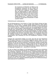 Drucksache 15/243 (15/76) Landtag des Saarlandes - 15. Wahlperiode - Der Ausschuss für Wirtschaft und Währung des Europäischen Parlaments hat dem Entwurf der Europäischen Kommission mit einigen Änderun- gen im Mai 2012 zugestimmt. Die Abstimmung über das Regelungswerk ist wegen Diskussions- bedarfs zwischen Parlament, Rat und Kommission über diese Änderungen auf den Herbst verscho- ben worden. Es ist daher fraglich, ob die neuen Regeln pünktlich zum 1. Januar 2013 in Kraft tre- ten können und wie diese schlussendlich im Detail aussehen werden.“ Vorbemerkung der Landesregierung: Wie die Bundesregierung in ihrer Antwort zu Frage 16 der Kleinen Anfrage der Abge- ordneten Dr. Gerhard Schick, Dr. Thomas Gambke, Britta Haßelmann sowie weiterer Abgeordneter und der Fraktion BÜNDNIS 90/DIE GRÜNEN zur Bankenregulierung vom 01.02.2012 (BT-Drs. 17/8524) so vertritt auch die Landesregierung die Auffas- sung, dass es zunächst weiterer Datenerhebungen und Analysen bedarf, um die Aus- wirkungen einer Leverage Ratio auf die Kreditvergabe, die Handelsfinanzierung oder die Geschäftsmodelle der Banken sowie das Zusammenspiel mit anderen regulatori- schen Vorgaben abzuschätzen. Erst auf Basis dieser Ergebnisse soll über die endgül- tige Ausgestaltung der Kennziffer entschieden werden. Auf europäischer Ebene wird der Vorschlag unterstützt, die endgültige Ausgestaltung im ordentlichen Gesetzge- bungsverfahren unter Einbindung von Rat und Europäischem Parlament zu verab- schieden. Entgegen dem ursprünglichen Zeitplan, der vorsah, dass über die neuen Regelwerke der EU bereits Anfang Juli im EU-Parlament abgestimmt werden sollte, sind in den Trilogverhandlungen zwischen EU-Kommission (KOM), EU-Parlament (EP) und Euro- päischem Rat (ER) auf Grund komplizierter Verhandlungen deutliche Verzögerungen eingetreten, da das EP eine Reihe von Anliegen verfolgt, die der ER prüfen muss. Die Abstimmung im EP ist nach mehreren Verschiebungen für den 21. November 2012 terminiert. Es erscheint nach der Terminlage somit durchaus realistisch, dass die neu- en Regelungen wie geplant zum 1. Januar 2013 in Kraft treten. Für das von Basel III als Reaktion auf die Bankenkrise konzipierte neue aufsichtliche Instrument der Höchstverschuldungsquote für Kreditinstitute (Leverage Ratio), sieht das betreffende Regelwerk, die EU-Verordnung Capital-Requirements-Regulation (CRR), eine Beobachtungsperiode bis 2017 vor. Erst danach wird auf der Basis eines Berichts der Europäischen Bankenaufsichtsbehörde EBA entschieden, ob und in wel- cher Ausgestaltung und Höhe die Höchstverschuldungsquote 2018 verbindlich einge- führt wird. Die Institute müssen jedoch – so sieht es der Verordnungsentwurf vor - un- geachtet der dann noch laufenden Beobachtungsperiode ihre Höchstverschuldungs- quote bereits ab 2015 veröffentlichen. -2-