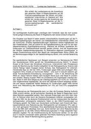 LANDTAG DES SAARLANDES 15. Wahlperiode Drucksache 15/243 (15/76) 30.11.2012 ANTWORT zu der Anfrage des Abgeordneten Hubert Ulrich (B90/Grüne) betr.: Auswirkungen der Umsetzung von Basel III auf das Land Vorbemerkung des Fragestellers: „Als Konsequenz aus der Finanzmarktkrise sollen mit der CRD IV-Regulierung zum 1. Januar 2013 neue Regeln zur Mindestkapital- und Liquiditäts- ausstattung von Kreditinstituten (Basel III) umge- setzt werden. Durch eine quantitative und qualita- tive Verschärfung der Eigenkapitalanforderungen soll der Bankensektor und das Finanzsystem sta- bilisiert werden. Neben verschärften Regeln zur risikobasierten Ei- genkapitalausstattung ist Inhalt des Regelungs- werkes auch die Einführung einer Leverage Ratio, einer Verschuldungsobergrenze, die nicht zwi- schen risikobehafteteren und risikoärmeren Kredi- ten unterscheidet. Sie schreibt eine Höchstgrenze für das Verhältnis zwischen Bilanzsumme zum Kernkapital vor. Bis 2017 soll die Höchstgrenze von 3% als Beobachtungskennziffer eingeführt werden, bevor eine Obergrenze nach einer Evalu- ierung möglicherweise verbindlich gemacht wer- den wird. Die Regulierungsmaßnahmen sollen für alle Ban- ken gleichermaßen gelten, unabhängig von ihrer Größe, ihrem Geschäftsmodell und ihrem Risiko- potential. Mit Blick darauf verstärkt sich die ver- breitete Sorge, dass die verschärften Eigenkapi- talanforderungen die Finanzierungsbedingungen von kleinen und mittelständischen Unternehmen sowie der öffentlichen Haushalte verschlechtern könnten. Ausgegeben: 30.11.2012 (07.08.2012)