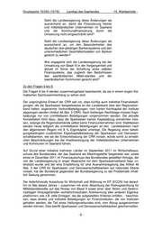 Drucksache 15/243 (15/76) Landtag des Saarlandes - 15. Wahlperiode - Schlussendlich ist festzuhalten, dass das Saarland anlässlich der Umsetzung der EU- Richtlinie Capital-Requirements-Directive (CRD IV) in nationales Recht (CRD IV- Umsetzungsgesetz) in den beteiligten Ausschüssen des Bundesrates die verschiede- nen Anträge, die auf Arbeitsebene in Sondersitzungen der Länderarbeitsgruppe Basel III mehrheitlich abgestimmt waren, unterstützt hat. Der Bundesrat hat – mit Unterstüt- zung der Landesregierung - am 02.11.2012 gegenüber der Bundesregierung zu den oben aufgezeigten Problemkreisen inhaltlich Stellung genommen und sich, solange der endgültige Inhalt des CRD-IV-Umsetzungspakets noch nicht feststeht, weiterge- hende Stellungnahmen vorbehalten. Gleichzeitig hat er die Bundesregierung aufgefor- dert, die notwendigen Informationen so bald wie möglich zur Verfügung zu stellen. -8-