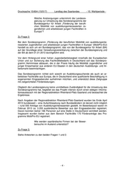 Drucksache 15/604 (15/517) Landtag des Saarlandes - 15. Wahlperiode - Welche Anstrengungen unternimmt die Landesre- gierung zur Umsetzung des Sonderprogramms der Bundesagentur für Arbeit „Förderung der berufli- chen Mobilität von ausbildungsinteressierten Ju- gendlichen und arbeitslosen jungen Fachkräften in Europa“? Zu Frage 2: Bei dem Sonderprogramm „Förderung der beruflichen Mobilität von ausbildungsinte- ressierten Jugendlichen und arbeitslosen jungen Fachkräften in Europa“ (MobiPro-EU) handelt es sich um ein Bundesprogramm, das von der Bundesagentur für Arbeit (BA) auf der Grundlage einer Verwaltungsvereinbarung zwischen der Bundesregierung und der BA ab dem 01.01.2013 durchgeführt wird. Vor dem Hintergrund einer hohen Jugendarbeitslosigkeit innerhalb der Europäischen Union und zur Sicherung des Fachkräftebedarfs in Deutschland soll das Sonderpro- gramm Hemmnisse abbauen, die in der Praxis häufig die Mobilität Jugendlicher und junger Erwachsener aus anderen EU-Staaten in den deutschen Ausbildungs- und Ar- beitsmarkt beeinträchtigen. Das Sonderprogramm richtet sich sowohl an Ausbildungssuchende als auch an ar- beitslose Fachkräfte aus Europa, die in Deutschland eine qualifizierte Beschäftigung in sogenannten Engpassberufen aufnehmen möchten, und unterstützt diese Zielgruppe mit zielgerichteten Förderleistungen. Obgleich die Landesregierung keine unmittelbare Zuständigkeit für die Umsetzung des Sonderprogramms hat, begleitet sie das Projekt intensiv durch einen stetigen Informa- tionsaustausch mit der Regionaldirektion Rheinland-Pfalz-Saarland und beobachtet die Ergebnisse. Nach Angaben der Regionaldirektion Rheinland-Pfalz-Saarland wurden bis Ende April 2013 bundesweit – eine Aufschlüsselung nach Bundesländern ist derzeit nicht möglich – rund 550 Anträge von Ausbildungsinteressenten gestellt. Im Bewerberpool waren im Februar 2013 ca. 3.200 ausländische Bewerber aus den Engpassberufen registriert. Davon konnten bisher 166 Personen auf eine Stelle in Deutschland vermittelt werden. Insgesamt wurden bisher aus dem Bereich Fachkräfte 170 Förderanträge des Pro- gramms MobiPro-EU registriert. Wie werden saarländische Firmen bei der Bewer- bersuche im Ausland unterstützt? Zu Frage 3: Siehe Antworten zu den beiden Fragen 1 und 2. -4-