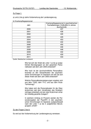 LANDTAG DES SAARLANDES 15. Wahlperiode Drucksache 15/779 (15/727) 11.02.2014 ANTWORT zu der Anfrage der Abgeordneten Astrid Schramm (DIE LINKE.) betr.: Umsetzung der Psychiatrie-Personalverordnung (Psych-PV) und Entwicklung der Personalkosten Vorbemerkung der Fragestellerin: „Die zum 01.01.2017 aufgehobene Verordnung über Maßstäbe und Grundsätze für den Personalbedarf in der stationären Psychiatrie (Psychiatrie-Personal- verordnung (Psych-PV)) bildet die Grundlage für die personelle Ausstattung in psychiatrischen Einrichtun- gen. Es gab wiederholt Beschwerden darüber, dass die Vorgaben für die Personalausstattung nur unzureichend erfüllt werden.“ Vorbemerkung Landesregierung: Die zur Beantwortung der Anfrage erforderlichen Daten werden seitens der Landesregierung nicht erhoben. Eine Beantwortung könnten lediglich die Krankenhäuser selbst vornehmen. Aufgrund des inhaltlichen Umfangs der Fragen und der Tatsache, dass die Fragestellerin eine Entwicklung ab dem Jahr 2000 dargestellt haben möchte, würde eine Beantwortung einen sehr hohen Verwaltungs- und Kostenaufwand sowie Bindung des Personals für die Krankenhäuser bedeuten. Aus diesem Grund hat die Landesregierung zunächst davon ab- gesehen, die Anfrage an die Krankenhäuser weiterzuleiten, zudem nicht gewährleistet wer- den kann, dass alle Krankenhäuser antworten und damit keine aussagekräftigen Antworten geleistet werden können. Wie hat sich seit dem Jahr 2000 die personelle Ausstat- tung in den psychiatrischen Einrichtungen im Saarland nach Berufsgruppen seit dem Jahr 2000 entwickelt, auf- geschlüsselt nach a) Ärzten, b) Krankenpflegepersonal, c) Diplom-Psychologen, d) Ergotherapeuten und Arbeitserzieher, e) Bewegungstherapeuten, Krankengymnasten, Physiotherapeuten, f) Sozialarbeiter, Sozialpädagogen, g) sonstiges Personal? Ausgegeben: 11.02.2014 (09.01.2014) bitte wenden