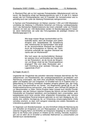 Drucksache 15/937 (15/826) Landtag des Saarlandes - 15. Wahlperiode - In Rheinland-Pfalz gibt es fünf regionale Polizeipräsidien (Mitarbeiteranzahl nicht be- kannt). Die Besoldung erfolgt laut Besoldungsordnung nach A 16 oder B 3, faktisch werden alle fünf Polizeipräsidenten nach B 3 besoldet. Die Vertreterfunktion wird re- gelmäßig durch den Leiter der Abteilung Polizeieinsatz wahrgenommen. In Sachsen sind Polizeidirektionen mit Stärken zwischen 1.200 und 3.000 Mitarbeitern unmittelbar der Abteilung 3 („Öffentliche Sicherheit und Ordnung, Landespolizeipräsi- dium“) des Sächsischen Staatsministeriums des Innern unterstellt. Leiter von Polizeidi- rektionen mit mehr als 1.500 Bediensteten werden mit Besoldungsgruppe B 4 bewer- tet, deren Stellvertreter, als Leiter des Führungsstabes der jeweiligen Direktion mit Besoldungsgruppe A 16. Wie lange müssen Bürger durchschnittlich auf Po- lizeikräfte warten, wenn die Anzeigen nicht zeitlich dringend sind, beispielsweise bei Ruhestörung oder Verkehrsunfall mit Sachschaden? Wie lange ist die durchschnittliche Wartezeit bei Einsätzen durch die Kriminalpolizei im Rahmen der Tatort- aufnahme außerhalb der regulären Dienstzeit wie nachts oder am Wochenende? Wie hoch waren die durchschnittlichen Wartezei- ten zwischen Anruf und Eintreffen der Polizeikräfte vor der Polizeireform, als die Anrufe der Bürgerin- nen und Bürger direkt bei den Polizeiinspektionen eingingen? Wie sind diese Wartezeiten jetzt – nach Einrichtung einer zentralen Führungs- und Lagezentrale (FLZ)? Zu Fragen 16 und 17: Ungeachtet der Dringlichkeit des polizeilich relevanten Anlasses übernehmen die Poli- zeibeamtinnen und Polizeibeamten des Landespolizeipräsidiums grundsätzlich nach Alarmierung unverzüglich, das heißt ohne schuldhafte Verzögerung, ihre Einsatzauf- gaben und begeben sich zum Ereignisort. Im Einzelfall kann es im Ergebnis einer La- gebeurteilung zur Erfüllung hoheitlicher Aufgaben dringend geboten sein, den Ereig- nisort unter Inanspruchnahme von Sonder- und Wegerechten gemäß §§ 35 und 38 Straßenverkehrsordnung aufzusuchen, unter anderem, wenn höchste Eile geboten ist, um Menschenleben zu retten. Solche Einsätze haben insoweit auch höchste Priorität. Wartezeiten, also den Zeitraum zwischen Eingang des Notrufs und dem Eintreffen der Polizeikräfte am Ereignisort betreffend, sind grundsätzlich dann unvermeidbar, wenn beispielsweise durch einen prioritär höher eingestuften Einsatzanlass oder mehrerer solcher Einsatzanlässe Personal temporär gebunden ist und nach Abwägung der Um- stände eine zeitliche Verzögerung bis zur Entsendung einsatzungebundener Kräfte vertretbar erscheint, so dass nicht zwingend notwendig eine andere Dienststelle um Unterstützung gebeten werden muss. Im Gegensatz zum Brandschutzwesen, wo eine Eintreffzeit (Zeitpunkt Alarmierung bis zum Eintreffen am Ereignisort) und zum Rettungswesen, wo eine Hilfsfrist (Zeitraum zwischen Eingang Notruf und Eintreffen am Ereignisort) festgelegt ist, sind Einsatzan- lässe für die Polizei unter anderem im Hinblick auf Art, Umfang, Intensität, Auswirkun- gen und vor allem die im Einzelfall zu treffenden Maßnahmen zu unterschiedlich und deshalb kaum standardisierbar. -9-