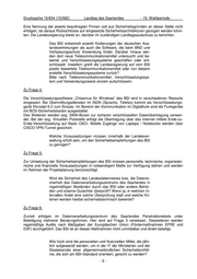Drucksache 15/654 (15/582) Landtag des Saarlandes - 15. Wahlperiode - Eine Nennung der jeweils beauftragten Firmen soll aus Sicherheitsgründen an dieser Stelle nicht erfolgen, da daraus Rückschlüsse auf eingesetzte Sicherheitsarchitekturen gezogen werden könn- ten. Die Landesregierung bietet an, darüber im zuständigen Landtagsausschuss zu berichten. Das BSI entwickelt sowohl Kodierungen der deutschen Aus- landsvertretungen als auch die Software, die beim BND und Verfassungsschutz Anwendung findet. Darüber hinaus wer- den dort neue Telekommunikationsmittel untersucht und be- wertet und Verschlüsselungssysteme geschaffen oder ent- schlüsselt. Inwiefern greift die Landesregierung auf vom BSI positiv bewertete Telekommunikationsmittel oder von diesem erstellte Verschlüsselungssysteme zurück? Bitte nach Telekommunikationsmittel, Verschlüsselungssys- tem und Verwendungszweck einzeln aufschlüsseln. Zu Frage 4: Die Verschlüsselungssoftware „Chiasmus für Windows“ des BSI wird in verschiedenen Ressorts eingesetzt. Bei Übermittlungsdiensten im ISDN (Sprache, Telefax) kommt als Verschlüsselungs- gerät Elcrodat 6-2 zum Einsatz. Im Bereich der Kommunikation im Digitalfunk sind die Funkgeräte mit BOS-Sicherheitskarten ausgestattet. Des Weiteren werden sog. SINA-Boxen zur sicheren verschlüsselten Datenübertragung verwen- det. Bei der sog. Virtuellen Poststelle erfolgt die Übertragung über das Internet mittels Ende-zu- Ende-Verschlüsselung auf Basis OSCI. Mobile Zugänge von Laptops / Notebooks werden über CISCO VPN-Tunnel gesichert. Welche Voraussetzungen müssen innerhalb der Landesver- waltung erfüllt sein, um den Sicherheitsempfehlungen des BSI zu genügen? Zu Frage 5: Zur Umsetzung der Sicherheitsempfehlungen des BSI müssen personelle, technische, organisato- rische und finanzielle Voraussetzungen in notwendigem Maße zur Verfügung stehen und werden im Rahmen der Projektplanung berücksichtigt. Wird die Sicherheit des Landesdatennetzes bzw. die Datensi- cherheit des Datenverarbeitungszentrums des Saarlandes in regelmäßigen Abständen durch das BSI oder andere Behör- den und externe Gutachter überprüft? Wenn ja, in welchen In- tervallen findet eine solche Überprüfung statt und welche Kri- terien werden hierbei sicherheitstechnisch bewertet? Zu Frage 6: Zurzeit erfolgen im Datenverarbeitungszentrum des Saarlandes Penetrationstests unter Beteiligung mehrerer Beratungsfirmen. Hier wird auf Frage 3 verwiesen. Desweiteren werden regelmäßige Audits nach Maßgaben der Europäischen Union (Fördermaßnahmen EFRE und ESF) durchgeführt. Das BSI ist an diesen Maßnahmen nicht unmittelbar und direkt beteiligt. Wie hoch sind die personellen und finanziellen Mittel, die jähr- lich aufgewandt werden, um in der IT der Ministerien und der Staatskanzlei einer allgemeinverbindlichen Sicherheitsrichtli- nie, die sich am BSI-Standard orientiert, gerecht zu werden? -5-