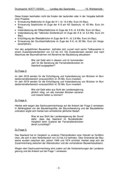 Drucksache 16/577 (16/524) Landtag des Saarlandes - 16. Wahlperiode - Diese Kosten beinhalten nicht die Kosten der laufenden oder in der Vergabe befindli- chen Projekte: Erneuerung Illtalbrücke im Zuge der A 1, rd. 13,4 Mio. Euro (im Bau), Erneuerung Saarbrücke im Zuge der A 8 am AD Saarlouis, rd. 43 Mio. Euro (im Bau), Instandsetzung der Ellbachtalbrücke im Zuge der A 8, rd. 6,8 Mio. Euro (im Bau), Instandsetzung der Talbrücke Großenbruch im Zuge der A 8, rd. 6,5 Mio. Euro (im Bau), Ertüchtigung der Bliestalbrücke im Zuge der B 41, rd. 2,8 Mio. Euro (im Bau), Erneuerung der Grumbachtalbrücke im Zuge der A 6, rd. 60 Mio. Euro (im Verga- beverfahren). Von den aufgeführten Bauwerken befinden sich zurzeit noch sechs Teilbauwerke in einem Zustandsnotenbereich von 3,0 bis 4,0. Die Zustandsnoten werden erst nach Abschluss der Baumaßnahmen mit Abnahme der Bauleistung aktualisiert. Wie viel Geld wird in diesem und im kommenden Jahr für die Sanierung der Fernstraßenbrücken im Saarland ausgegeben? Zu Frage 3: Im Jahr 2018 werden für die Ertüchtigung und Instandsetzung von Brücken im Bun- desfernstraßenbereich voraussichtlich rd. 25 Mio. Euro investiert. Im Jahr 2019 werden für die Ertüchtigung und Instandsetzung von Brücken im Bun- desfernstraßenbereich voraussichtlich rd. 30 Mio. Euro investiert. Wie viel Geld wäre aus Sicht der Landesregierung jährlich nötig, um alle maroden Brücken sanieren und instand halten zu können? Zu Frage 4: Hierbei wird wegen des Sachzusammenhangs auf die Antwort der Frage 2 verwiesen. In Abhängigkeit von der Bauwerksgröße, der Bauvorbereitung und der Baustellenko- ordination ergibt sich hierbei kein einheitlicher jährlicher Bedarf. Was ist aus Sicht der Landesregierung der Grund dafür, dass das Saarland im Bundesländer- Vergleich beim Zustand der Fernstraßenbrücken derart zurückliegt? Zu Frage 5: Das Saarland hat im Vergleich zu anderen Flächenländern eine Vielzahl an Großbrü- cken, die sich in dem Notenbereich von 3,0 bis 4,0 befinden. Über Dreiviertel der Bau- werke wurden zwischen den Jahren 1949 und 1974 errichtet. Hierbei zeigt sich der Zusammenhang zwischen der Altersstruktur und der vorhandenen Bauwerkssubstanz. Wegen dem Sachzusammenhang wird zudem auf die Vorbemerkungen der Landesre- gierung und die Antwort auf die Frage 1 verwiesen. -3-
