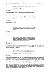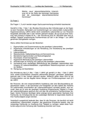 Drucksache 14/456 (14/421) Landtag des Saarlandes - 14. Wahlperiode - Welcher Personenkreis muss diesen „neuen“ Nachweis erbringen? Zu Frage 3: Der Personenkreis wurde in der Antwort zu Frage 1 beschrieben. Wann muss dieser „neue“ Nachweis erbracht wer- den? Vor oder nach der Eröffnung einer Gaststät- te? Zu Frage 4: Siehe Antwort zu Frage 1. Bisher umfasste dieser Nachweis einen zeitlichen Umfang von vier Unterrichtsstunden. Wie lange dauert die „neue“ lebensmittelrechtliche Unterrich- tung? Zu Frage 5: Siehe Antwort zu Frage 2. Was wird bei dieser Unterrichtung vermittelt? In welchem Umfang erfahren die künftigen Gastwirte welche notwendigen Kenntnisse? (Bitte Auflistung des geplanten Informationspaketes.) Zu Frage 6: In der Schulung werden den Lebensmittelunternehmern die gemäß der Anlage 1 zur LMHV erforderlichen Kenntnisse vermittelt. Eine Aufstellung der Kenntnisse ist dieser Antwort als Anlage 1 beigefügt. Wo erhält der künftige Gastwirt die bzw. wie er- fährt er von den entsprechenden Informationen und Unterrichtungen? Wer überprüft wann? Zu Frage 7: Die Unternehmer werden von der IHK über die dort angebotenen Schulungen infor- miert (siehe Antwort zu Frage 2). Darüber hinaus kommen die amtlichen Lebensmittel- kontrolleure ihrem Beratungsauftrag bei den Kontrollen insoweit nach, als sie bei feh- lendem Nachweis der Fachkunde, neben der Verhängung von Sanktionen, den Le- bensmittelunternehmer auf die Schulungsverpflichtung und –möglichkeiten hinweisen. Die Fachkenntnisse sind auf Verlangen der zuständigen Behörde jederzeit nachzuwei- sen. Zuständige Behörde zur Überwachung der lebensmittelhygienischen Anforderun- gen in Lebensmittelunternehmen inklusive der Gaststätten ist im Saarland das Lan- desamt für Gesundheit und Verbraucherschutz. -4-