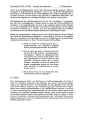Drucksache 15/351 (15/239) Landtag des Saarlandes - 15. Wahlperiode - Zudem sind die Mitgliederzahlen nicht in allen Gemeindeverbänden gesunken. Während die Zahlen im Regionalverband Saarbücken sowie in den Landkreisen Merzig-Wadern, Neunkirchen und St. Wendel nahezu konstant geblieben sind, sind die Mitgliederzahlen im Landkreis Saarlouis und im Saarpfalz-Kreis gesunken. Es bleibt somit festzuhalten, dass die Zahlen der Mitglieder der Freiwilligen Feuerwehr nicht generell rückläufig sind. Die Mitgliederzahl der Jugendfeuerwehren ist im Jahr 2011 wie bereits im vorausgegan- gen Jahr leicht zurückgegangen. Erfreulich jedoch ist, dass die Zahl der weiblichen Ju- gendlichen in der Jugendfeuerwehr wie auch in den vergangen Jahren wieder gestiegen ist. Da sich die Mitglieder der Freiwilligen Feuerwehren im Wesentlichen aus den Jugend- feuerwehren rekrutieren, ist zu erwarten, dass auch die Mitgliederzahlen der Freiwilligen Feuerwehren in den kommenden Jahren ebenfalls leicht rückläufig sein werden. Neben der demographischen Veränderung sind als mögliche Ursachen für die rückläufi- gen Zahlen die Abschaffung der Wehrpflicht, unterschiedliche Formen der Erwerbstätig- keit und ein verändertes Freizeitverhalten zu nennen. Verlässliches und aussagekräftiges statistisches Datenmaterial zu dieser Thematik ist jedoch nicht verfügbar. a) Sollte aus Sicht der Landesregierung den Ju- gendfeuerwehren die Möglichkeit gegeben werden, das Mindesteintrittsalter abzusenken? b) Könnte damit, wie etwa in Rheinland-Pfalz üb- lich (vgl. § 9 Abs. 6 Brand- und Katastrophen- schutzgesetz – LBKG), die Mitgliederzahl der Feuerwehren im Saarland erhöht werden, wenn eine Mitgliedschaft für Kinder bereits ab dem sechsten Lebensjahr möglich ist? (In einem späteren Lebensalter ist es oft so, dass schon andere ortsansässige Vereine mit ihren Ange- boten die Kinder und Jugendlichen an sich ge- bunden haben.) c) Wenn diese Frage mit nein beantwortet wird, welche Gründe sprechen dagegen? Zu Frage 3: Die Landesregierung sieht in der Gründung von Vorbereitungsgruppen für Kinder im Alter von mindestens sechs Jahren bis höchstens zehn Jahren eine sinnvolle Ergän- zung für die Jugendfeuerwehren. Das Eintrittsalter für die Jugendfeuerwehr sollte bei acht Jahren bleiben. Kinder aus den Vorbereitungsgruppen können damit entspre- chend ihrem Entwicklungsstand flexibel in die Jugendfeuerwehr wechseln. Dies stärkt zu einem die Attraktivität der Jugendfeuerwehr und zum anderen können Kinder schon frühzeitig in die Freiwillige Feuerwehr integriert werden, bevor sie sich bereits an ande- re Aktivitäten gebunden haben. Die rechtlichen Grundlagen sollen im Gesetz zur Ände- rung von Vorschriften im Bereich des Brandschutzes, der Technischen Hilfe und des Katastrophenschutzes, das sich als Ressortentwurf derzeit in der externen Anhörung befindet, geschaffen werden. -8-