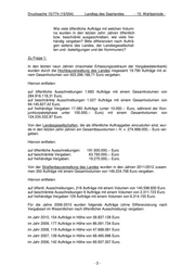 Drucksache 15/774 (15/554) Landtag des Saarlandes - 15. Wahlperiode - Wie viele öffentliche Aufträge mit welchen Volumi- na wurden in den letzten zehn Jahren öffentlich bzw. beschränkt ausgeschrieben, wie viele frei- händig vergeben? Bitte differenziert nach Aufträ- gen seitens des Landes, der Landesgesellschaf- ten und –beteiligungen und der Kommunen)? Zu Frage 1: In den letzten neun Jahren (maximaler Erfassungszeitraum der Vergabedatenbank) wurden durch die Hochbauverwaltung des Landes insgesamt 19.790 Aufträge mit ei- nem Gesamtvolumen von 503.296.168,71 Euro vergeben. Hiervon entfielen: auf öffentliche Ausschreibungen 1.683 Aufträge mit einem Gesamtvolumen von 284.916.118,31 Euro, auf beschränkte Ausschreibungen 1.027 Aufträge mit einem Gesamtvolumen von 94.145.827,42 Euro, auf freihändige Vergaben 17.080 Aufträge (unter 10.000.-- Euro, während der Kon- junkturpaketphase unter 100.000,-- Euro) mit einem Gesamtvolumen von 124.234.222,97 Euro. Von den Landesgesellschaften, die als öffentliche Auftraggeber einzustufen sind, wur- de in den letzten zehn Jahren ein Gesamtbauvolumen i. H. v. 274.998.000,-- Euro ver- geben. Hiervon entfielen: auf öffentliche Ausschreibungen: 191.930.000,-- Euro auf beschränkte Vergaben: 63.793.000,-- Euro auf freihändige Vergaben: 19.275.000,-- Euro. Von der Straßenbauverwaltung des Landes wurden in den Jahren 2011/2012 zusam- men 350 Aufträge mit einem Gesamtvolumen von 149.224.708 Euro vergeben. Hiervon entfielen: auf öffentl. Ausschreibungen, 218 Aufträge mit einem Volumen von 140.598.830 Euro auf beschränkte Ausschreibungen 9 Aufträge mit einem Volumen von 2.311.723 Euro auf freihändige Vergaben 129 Aufträge mit einem Volumen von 6.314.155 Euro. Für die Jahre 2006-2010 wurden folgende Aufträge (ohne Differenzierung nach Vergabeart im Wesentlichen nach öffentlicher Ausschreibung) vergeben: im Jahr 2010, 154 Aufträge in Höhe von 58.837.128 Euro im Jahr 2009, 177 Aufträge in Höhe von 86.091.734 Euro im Jahr 2008, 119 Aufträge in Höhe von 47.668.081 Euro im Jahr 2007, 139 Aufträge in Höhe von 68.485.996 Euro im Jahr 2006, 142 Aufträge in Höhe von 69.937.307 Euro. -2-