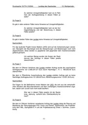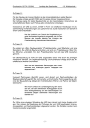Drucksache 15/774 (15/554) Landtag des Saarlandes - 15. Wahlperiode - Zu welchen Unregelmäßigkeiten kam es im Rah- men der Auftragserteilung in diesen Fällen je- weils? Zu Frage 5: Es gab in allen anderen Fällen keine Hinweise auf Unregelmäßigkeiten. Zu welchen Unregelmäßigkeiten kam es bei Auf- tragserledigung und der Abrechnung in diesen Fällen jeweils? Zu Frage 6: Es gab in beiden Fällen des Landes keine Hinweise auf Unregelmäßigkeiten. Nachrichtlich: Für das laufende Projekt Innere Medizin (UKS) wird auf die Vorbemerkungen verwie- sen. Bezüglich der Baumängel sind die Überprüfungen und Bewertungen noch nicht abgeschlossen; diese werden zu gegebener Zeit gegenüber dem Insolvenzverwalter geltend gemacht. Um welchen Betrag wurden die Kosten der Reali- sierung des Auftrags in diesen Fällen jeweils überschritten? Zu Frage 7: Bei dem im Offenen Verfahren des Landes erteilten Auftrag wurde die ursprüngliche Auftragssumme von 2.065.247,07 Euro durch Nachträge i. H. v. 189.205,46 Euro überschritten. Bei dem in Öffentlicher Ausschreibung des Landes erteilten Auftrag gab es keine Nachträge (Auftragssumme 121.283,63 Euro; Abrechnungssumme 113.631,39 Euro). Nachrichtlich: Die Folgen für die Maßnahme Innere Medizin der UKS, die sich aus der wirtschaftli- chen Situation des Bauunternehmers und dem (vorläufigen) Insolvenzverfahren erge- ben, lassen sich zurzeit noch nicht exakt beziffern. Wer war in diesen Fällen jeweils mit der Baulei- tung, -planung, -aufsicht bzw. Oberbauleitung be- traut? Zu Frage 8: Bei dem im Offenen Verfahren vergebenen Auftrag des Landes oblag die Planung und Bauleitung der Planungsgruppe Prof. Focht und Partner, Saarbrücken; die Projektlei- tung dem ABL, Sachgebiet E 4 und die Projektsteuerung Drees + Sommer, Luxem- bourg. -5-