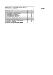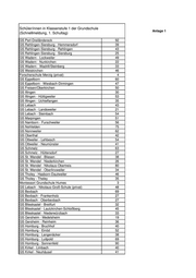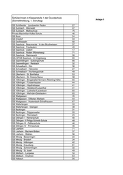 Schüler/innen in Klassenstufe 1 der Grundschule Anlage 1 (Schnellmeldung, 1. Schultag) GS Kleinblittersdorf 56 GS Kleinblittersdorf - Auersmacher 42 GS Mandelbachtal - Erfweiler-Ehlingen 44 GS Mandelbachtal - Ormesheim 20 GS Spiesen-Elversberg - Elversberg 43 GS Spiesen-Elversberg - Spiesen 45 GS St. Ingbert - Albert-Weisgerber-Schule 60 GS St. Ingbert - Rischbachschule 72 GS St. Ingbert - Rohrbach - Pestalozzischule 66 GS St. Ingbert - Südschule 91 Private École primaire, bisher keine Meldung