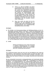 Drucksache 15/991 (15/889) ___Landtag des Saarlandes - 15. Wahlperiode - a) Trifft es zu, dass die Gehälter und Versor- gungsrücklagen zwar nicht dem Landeshaus- halt im Sinne von Personalkosten zur Last fal- len, sondern durch sogenannte institutionelle Förderungen der Landesgesellschaften durch das Saarland als Fördermittelgeber abge- rechnet werden, da in den einzelnen Projek- ten von Gesellschaften Landes-, Bundes- und EU-Mittel fließen, in denen aber nicht alle Ge- haltskosten förderfähig sind? Auch hier bitte aufschlüsseln nach den jeweiligen institutio- nellen Förderungen. b) Wenn dies zutrifft, wie setzen sich die Ge- haltskosten, die nicht förderfähig sind, zu- sammen? Bitte einzeln aufschlüsseln für jede Landesgesellschaft nach Landesfördermittel, Bundesfördermittel und EU-Mittel. Zu Frage 2: a) Die Gehälter, die Versorgungszuschläge, der Beihilfepauschbetrag und die Zu- satzentgelte (AG-Brutto) werden in den Fällen, in denen die Gesellschaften keine kostendeckenden Erträge erzielen bzw. zusätzlichen Finanzierungsbedarf haben, entweder über jährliche Kapitalzuführungen oder über institutionelle Zuwendungen des Landes mitfinanziert (siehe Tabelle zu Frage 1, Spalte 5). In einem Fall der in- stitutionellen Förderung wird eine gemeinsame Grundfinanzierung durch den Bund und die Länder geleistet. Für die Annahme einer Finanzierung von Zuweisungen aus Projektmitteln liegen bei keiner der betroffenen Gesellschaften Anhaltspunkte vor. Auf die Erstattung der Kosten der Zuweisung wird in einem Fall verzichtet. b) Entfällt. Welches Kontrollgremium des Landes hat Einsicht in sämtliche Kontobewegungen der jeweiligen Landesgesellschaften, welche nicht nur die Mittel- abrufe der Landesfördermittel betreffen? Zu Frage 3: Der Landesrechnungshof (LRH) prüft nach § 92 LHO die Betätigung des Landes bei Unternehmen in einer Rechtsform des privaten Rechts und kann sich dabei in aller Regel auch über das Prüfungsrecht nach § 54 HGrG unmittelbar unterrichten und zu diesem Zweck den Betrieb, die Bücher und sonstigen Dokumente des Unternehmens einsehen. Bei den privatrechtlich strukturierten Landesgesellschaften sind Aufsichtsräte (Beiräte, Kuratorien) als Überwachungsorgane installiert, die - in Abhängigkeit vom Umfang der Beteiligung - mit Landesvertreterinnen und Landesvertretern besetzt sind. Der Auf- sichtsrat hat als Kontrollgremium einen Anspruch auf jederzeitige Berichterstattung, die Befugnis, die Bücher der Gesellschaft zu prüfen, das Recht auf die Zuziehung bzw. Bestellung von Sachverständigen in konkreten Einzelangelegenheiten und die Mög- lichkeit, bestimmte Arten von Geschäften an seine Zustimmung zu binden (§ 90 Abs. 3 und 5, § 111 Abs. 2 und 4 AktG, § 52 GmbHG). -4-