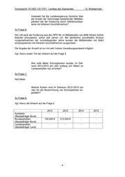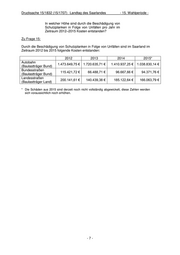 Drucksache 15/1832 (15/1707) Landtag des Saarlandes - 15. Wahlperiode - Inwieweit hat die Landesregierung Kenntnis über die Anzahl der Demontage bestehender Mittelleit- planken bei der Ersetzung durch Stahlschutzsys- teme mit höherem Durchfahrschutz? Zu Frage 6: Der LfS setzt die Forderung aus den RPS´09, im Mittelstreifen von BAB höhere Aufhal- testufen einzusetzen, schon seit Jahren um. Bei sämtlichen grundhaften Erneue- rungsmaßnahmen der zurückliegenden Jahre wurden die Mittelstreifen mit Stahl- schutzsystemen mit höherem Durchfahrschutz ausgerüstet. Die Angabe der Anzahl ist nur mit sehr hohem Verwaltungsaufwand möglich. Vgl. hierzu ersten Teil der Antwort auf die Frage 3. Wie viele Meter Schutzplanken wurden im Zeit- raum 2012-2015 pro Jahr entlang von Alleen an Landesstraßen neu errichtet? Zu Frage 7: Null Meter. Welche Kosten sind im Zeitraum 2012–2015 pro Jahr für die Neuerrichtung von Schutzplanken an- gefallen? Zu Frage 8: Vgl. hierzu die Antwort auf die Frage 2. 2012 2013 2014 2015 Autobahn - - - - (Baulastträger Bund) Bundesstraßen 150.000 € 213.000 € - - (Baulastträger Bund) Landesstraßen - - - - (Baulastträger Land) -4-