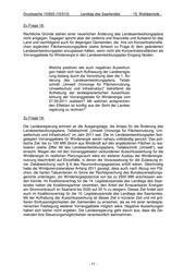 Drucksache 15/603 (15/512) Landtag des Saarlandes - 15. Wahlperiode - Zu Frage 18: Rechtliche Gründe stehen einer neuerlichen Änderung des Landesentwicklungsplans nicht entgegen. Dagegen spricht aber der zeitliche und finanzielle und Aufwand für das Land und nachfolgend auch für diejenigen Gemeinden, die ihre um Konzentrationsflä- chen ergänzten Flächennutzungspläne (siehe Antwort zu Frage 6) dem geänderten Landesentwicklungsplan anzupassen hätten, wenn nicht alle Konzentrationsflächen als Vorranggebiete für Windenergie in den Landesentwicklungsplan Eingang fänden. Welche positiven wie auch negativen Auswirkun- gen haben sich nach Auffassung der Landesregie- rung bislang durch die Verordnung über die 1. Än- derung des Landesentwicklungsplans, Teilab- schnitt „Umwelt (Vorsorge für Flächennutzung, Umweltschutz und Infrastruktur)“ betreffend die Aufhebung der landesplanerischen Ausschluss- wirkung der Vorranggebiete für Windenergie vom 27.09.2011 realisiert? Mit welchen entsprechen- den Effekten ist künftig aus der Sicht der Landes- regierung zu rechnen? Zu Frage 19: Die Landesregierung erinnert an die Ausgangslage, die Anlass für die Änderung des Landesentwicklungsplans, Teilabschnitt „Umwelt (Vorsorge für Flächennutzung, Um- weltschutz und Infrastruktur)“ im Jahr 2011 war: Die im Landesentwicklungsplan fest- gelegten Vorranggebiete für Windenergie waren nahezu vollständig genutzt. Das poli- tische Ziel, bis zu 100 MW Strom aus Windkraft auf den angebotenen Flächen zu rea- lisieren (siehe Ziffer 69 des Landesentwicklungsplans, Teilabschnitt „Umwelt“), war erreicht. Wegen der mit den Vorranggebieten verbundenen Ausschlusswirkung für die Windenergie im restlichen Planungsraum wäre ein weiterer Ausbau der Windenergie- nutzung beschränkt auf Einzelfälle, in denen die Voraussetzung für die Zulassung ei- ner Zielabweichung nach § 6 des Raumordnungsgesetzes erfüllt wären. Gleichzeitig hatte die Windpotenzialanalyse Anfang 2011 gezeigt, dass auch nach Abzug von Flä- chen, die harten Tabukriterien im Sinne der Rechtsprechung des Bundesverwaltungs- gerichts unterliegen, ein Windenergiepotenzial von bis zu 2500 MW erschlossen wer- den könnte. Im Koalitionsvertrag für die 14. Legislaturperiode des Landtags des Saar- landes hatten die Koalitionspartner vereinbart, den Anteil der Erneuerbaren Energien am Stromverbrauch im Saarland bis 2020 auf 20 % zu steigern. Dieses Ziel findet sich auch im Koalitionsvertrag für die 15. Legislaturperiode des Landtags des Saarlandes. Mit der Aufhebung der Ausschlusswirkung ist dieses Ziel in kürzerer Zeit und mit grö- ßeren Einflussmöglichkeiten der Gemeinden zu erreichen, als es mit einer landespla- nerischen Festlegung weiterer Vorranggebiete möglich wäre. Negative Auswirkungen haben sich bisher nicht ergeben. Die Landesregierung geht davon aus, dass die Ge- meinden ihre Steuerungsmöglichkeiten verantwortlich wahrnehmen. - 11 -
