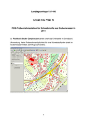 Landtagsanfrage 15/1406 Anlage 3 (zu Frage 7) PCB-Probennahmestellen für Schwebstoffe aus Grubenwasser in 2011 A. Fischbach Grube Camphausen (direkt unterhalb Einleitstelle im Gewässer) (Anmerkung: Keine Probenahmemöglichkeit für eine Schwebstoffprobe direkt im Grubenwasser mittels Zentrifuge vorhanden). 1