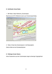 D. Schiffweiler Grube Reden 1. BW Reden, Ablauf Klärteiche_Grubenwasser Beprobung bis 2014 (Klärteiche waren auch Grubenwasserhaltig) 2. Reden, Einlauf des Grubenwassers in die Wassergärten Gleiche Stelle wie bei Schwebstoffproben E. Püttlingen Grube Viktoria Keine Probenahme aus dem Grubenwasser wegen schwieriger Zugänglichkeit 6