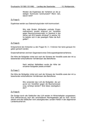 Drucksache 15/1560 (15/1496) Landtag des Saarlandes - 15. Wahlperiode - Werden die Ergebnisse der Verfahren an die je- weiligen Kommunen kommuniziert? Wenn nein, warum nicht? Zu Frage 5: Ergebnisse werden aus Datenschutzgründen nicht kommuniziert. Wie viele Strafen (Bußgelder und/oder Ersatz- maßnahmen) wurden aufgrund von Verstößen gegen Baumschutzsatzungen im Saarland in den Jahren seit 2012 jeweils verhängt? In welcher Hö- he beliefen sich in den jeweiligen Fällen die Buß- gelder? Zu Frage 6: Entsprechend den Antworten zu den Fragen Nr. 3 – 5 können hier keine genauen An- gaben gemacht werden. Ersatzmaßnahmen sind kein Gegenstand eines Ordnungswidrigkeitenverfahrens. Die Höhe der Bußgelder richtet sich nach der Schwere der Verstöße sowie den mit zu bewertenden wirtschaftlichen Verhältnissen des Betroffenen. Nach welchen Maßstäben wurde die Höhe der einzelnen Bußgelder jeweils ermittelt? Zu Frage 7: Die Höhe der Bußgelder richtet sich nach der Schwere der Verstöße sowie den mit zu bewertenden wirtschaftlichen Verhältnissen des Betroffenen. Wie verwendet das LUA die Bußgelder, die auf- grund von Verstößen gegen die Baumschutzsat- zung verhängt werden? Sind diese zweckgebun- den? Zu Frage 8: Die Erträge durch alle Geldbußen des LUA werden im Wirtschaftsplan ausgewiesen. Eine Differenzierung nach den verschiedenen Rechtsgebieten gibt es nicht. Grund- sätzlich sind alle Geldbußen nicht zweckgebunden, sondern fließen in den allgemeinen Landeshaushalt ein. -3-