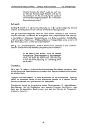 Drucksache 15/1560 (15/1496) Landtag des Saarlandes - 15. Wahlperiode - Welche Definition für „Wald“ nutzt das LUA bzw. die Oberste Forstbehörde? Welche sind die Vo- raussetzungen für die Anwendung des saarländi- schen Landeswaldgesetzes bzw. der kommunalen Baumschutzsatzungen? Zu Frage 9: Der Begriff „Wald“ ist in § 2 Bundeswaldgesetz und im § 2 Landeswaldgesetz definiert und wird dementsprechend vom LUA und der Forstbehörde angewandt. Zitat §2 (1) Bundeswaldgesetz: “Wald im Sinne diesen Gesetzes ist jede mit Forst- pflanzen bestockte Grundfläche .Als Wald gelten auch kahlgeschlagene oder verlichte- te Grundflächen, Waldwege, Waldeinteilungs- und Sicherungsstreifen, Waldblößen und Lichtungen, Waldwiesen, Wildäsungsflächen, Holzlagerplätze sowie weitere mit dem Wald verbundene und ihm dienende Flächen.“ Zitat § 2 (1) Landeswaldgesetz: „Wald im Sinne dieses Gesetzes ist jede mit Forst- pflanzen (Waldbäume und Waldsträucher) bestockte Grundfläche.“ In wie vielen Fällen wurden durch die Oberste Forstbehörde Genehmigungen für Baumfällungen erteilt, die durch die Kommunen unter Berufung auf die Baumschutzsatzung für unzulässig gehal- ten wurden? Zu Frage 10: Es ist kein Fall bekannt, in dem die Forstbehörde eine Baumfällung genehmigt hätte und die Kommune diese Genehmigung wegen einer Baumschutzsatzung für unzuläs- sig gehalten hätte. Dagegen sind Fälle bekannt, in denen Kommunen bei der Forstbehörde angefragt haben, ob bestimmte Bäume zu einer Waldfläche gehören, da in diesem Fall die Baumschutzsatzung nicht greift sondern das Waldgesetz. Grundsätzlich erteilt die Forstbehörde keine Genehmigungen für Baumfällungen. Baumfällungen darf ein Waldbesitzer nach eigenem Ermessen durchführen, muss dabei aber die gesetzlichen Bestimmungen und ggfs. den Rahmen des Forsteinrich- tungswerks beachten. -4-