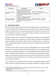 Mining Consulting HSEQ Management Energy and Process Engineering FUMINCO Gesellschaft mbH ® Verwendung Beschreibung Quelle Anlagen zum Antrag der wasserrechtli- chen Erlaubnis zur Fortsetzung der https://www.fragdenstaat.de 29 Grundlage Modellierung Entnahme und Ableitung von Grund- Geologie wasser für die Entwässerung des Tage- Informationen, Dokumente, Fachwissen aus baus Hambach im Zeitraum 2020-2030 der Projektgruppe (April 2019) Validierung und Prüfung der bergbau- bedingten Rückstellungen für die allgemeine Informationen Gutachten (Clausthal, 1. Juni 2017) Braunkohlentagebaue, Altstandorte und und Planungsparameter Prof. Dr.-Ing. habil. H. Tudeskhi30 Kraftwerksreststoffdeponien der RWE power AG 3.3 Geologisches Modell Die Entwicklungsbasis für das geologische Modell wird aus der Kombination von Geodaten der Lan- desvermessung NRW (DGM1, Modellierung der Tagesoberfläche) mit den in Kapitel 3.2 genannten Anlagen des Antrags für die wasserrechtliche Erlaubnis gebildet. Während die Geodaten der Landes- messung NRW bereits georeferenziert sind, werden die Pläne der Anlagen gescannt, georeferenziert und von 2-D-Daten zu 3-D-Daten transformiert. Grundsätzlich gliedert sich die Erstellung eines geologischen Blockmodells in drei aufeinanderfol- gende Phasen. Datensichtung, -aufbereitung und -analyse bilden einschließlich einer Plausibilitäts- prüfung die Datenbasis der ersten Phase. Das Ergebnis der ersten Phase besteht aus 3-D-georeferen- zierten geologischen Stützpunkten als Ergebnis (zum Beispiel 3-D-Schnitte oder Positionen im Bö- schungssystem). 31 Im Verlauf der zweiten Phase werden die Liegend- und Hangendflächen der einzelnen Schichten entwickelt und im sogenannten Schichtenmodell zusammengefasst. Auf dessen Grundlage kann in der dritten Phase innerhalb des geologischen 3-D-Blockmodells jedem Block ein entsprechender Ma- terialwert (geologische Schicht) zugewiesen werden. Die Erstellung der Schichtgrenzen erfolgt ab- hängig von den geologischen Verhältnissen der Lagerstätte und der räumlichen Dichte der geologi- schen Datenbasis entweder durch einfache lineare Funktionen oder entsprechende komplexe geosta- tistische Interpolationsverfahren. Bei der Modellierung der geologischen Schichten im Bereich des Braunkohlentagebaus Hambach werden aufgrund der geringen Datendichte unterschiedliche Methoden der statistischen Analyse 29 Open Knowledge Foundation Deutschland e.V.: https://fragdenstaat.de/blog/2019/08/01/rwe-grundwasser-tagebau- hambach-abpumpen/ [Letzter Zugriff: 20.11.2019] 30 Tudeskhi 2017 31 Schichtgrenzflächen oberhalb einer Schicht (Hangendfläche) und unterhalb einer Schicht (Liegendfläche) - 14 -