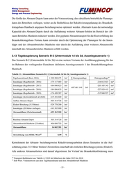 Mining Consulting HSEQ Management Energy and Process Engineering FUMINCO Gesellschaft mbH ® Tabelle 9 listet die in Anlage 2.6 dargestellten Szenarien und die Kombination der zugrundeliegenden Module beziehungsweise Untermodule auf. 3.12 Tagebauplanung Szenario B-2 (Untermodule 1b bis 3b, Ausstiegsszenario 1) Das Szenario B-2 (Untermodule 1b bis 3b) ist eine Variante der Ausführungsplanung für das im Rah- men des vorliegenden Gutachtens definierten Ausstiegsszenarios 1 des Braunkohlentagebaus Ham- bach. Kernelement der Abraum- beziehungsweise Rekultivierungsarbeiten dieses Szenarios ist die Auf- schüttung eines 434 Meter breiten Uferstreifens innerhalb des östlichen Böschungssystems (Elsdorf). Alle anderen Abraumarbeiten sind darauf abgestimmt. Im Verlauf der Braunkohlenförderung muss ein Abraum-Depot für rund 287,6 Locker-Kubikmeter auf der aktuellen Innenkippe aufgeschüttet werden, das nach Beendigung der Kohlenförderung für die abschließenden Rekultivierungsarbeiten wieder rückgebaut werden muss. Das Volumen- beziehungsweise Massendefizit innerhalb der Re- kultivierungsarbeiten wird aus drei Abraumsohlen des Abraumbetriebes Manheim gefördert. Die ein- zelnen Planungsergebnisse werden in Anlage 2.2 dargestellt und zusammen mit der Datengrundlage in Tabelle 10 gelistet. Tabelle 10: Abraumbilanz Szenario B-2 (Untermodule 1b bis 3b, Ausstiegsszenario 1) Tagebauendstand (Basis 2016) 1 220 288 475 lm³ ∑ Datengrundlage Datengrundlage38 Innenkippe (Regelbetrieb - 2016) -175 117 403 lm³ -216 812 023 tm³ Innenkippe (Regelbetrieb - 2017) -164 046 623 lm³ -203 105 343 tm³ -697 681 149 lm³ Innenkippe (Regelbetrieb - 2018) -184 096 835 lm³ -227 929 415 tm³ Innenkippe (Regelbetrieb - 2019) -174 420 287 lm³ -215 948 927 tm³ Innenkippe (Schwenkbetrieb ab 2020) -234 979 851 lm³ Aufbau Abraum-Depot -287 627 475 lm³ Elsdorf-Böschung (434 Meter) -645 579 500 lm³ Innenkippe (20-Meter-Auflager) -160 751 400 lm³ Abraumbilanz (Zwischenstand) -806 330 900 lm³ Rückbau Abraum-Depot 287 627 475 lm³ Abraumbetrieb Manheim (3 Sohlen) 519 604 785 lm³ Abraumbilanz 901 360 lm³ 39 Abweichung vom SOLL-Wert 0,05 % 38 Transport-Kubikmeter aus Tabelle 4 / 2019 als Mittelwert der Jahre 2015 bis 2018 39 Soll-Wert: Volumenwerte aus dem Tagebauendstand und dem Abraumbetrieb Manheim - 22 -