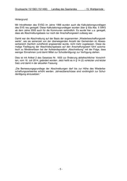 Drucksache 15/1583 (15/1490) Landtag des Saarlandes - 15. Wahlperiode - Hintergrund: Mit Inkrafttreten des EVSG im Jahre 1998 wurden auch die Kalkulationsgrundlagen des EVS neu geregelt. Diese Kalkulationsgrundlagen wurden über § 50a Abs. 5 SWG ab dem Jahre 2000 auch für die Kommunen verbindlich. Es wurde hier u.a. geregelt, dass als Abschreibungsbasis nur noch der Anschaffungswert zulässig war. Damit war die Abschreibung auf der Basis der sogenannten „Wiederbeschaffungszeit- werte“, wie sie seinerzeit von der überwiegenden Anzahl der Gemeinden im Abwas- serbereich (fachlich zutreffend) angewendet wurde, nicht mehr zugelassen. Diese da- malige Festlegung der Abschreibungsbasis auf den Anschaffungswert führt automa- tisch zu Mindererlösen bei der Aufwandsposition „Abschreibung“ mit der Folge, dass weniger Einnahmen (und damit Mittel zur Schuldentilgung) zur Verfügung stehen. Dies ist mit Artikel 2 des Gesetzes Nr. 1833 zur Änderung abfallrechtlicher Vorschrif- ten, vom 16. Juli 2014, geändert worden. Jetzt heißt es in § 14 (2) vorletzter und letzter Satz und damit in der aktuellen Fassung: „Die Bemessungsgrundlage der Abschreibungen darf bis zur Höhe des Wiederbe- schaffungszeitwertes erhöht werden. Jahresüberschüsse sind vordringlich zur Schul- dentilgung einzusetzen.“ -5-