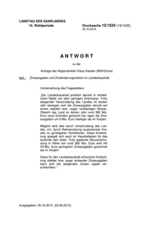 LANDTAG DES SAARLANDES 15. Wahlperiode Drucksache 15/1524 (15/1435) 05.10.2015 ANTWORT zu der Anfrage des Abgeordneten Klaus Kessler (B90/Grüne) betr.: Zinsausgaben und Zinsänderungsrisiken im Landeshaushalt Vorbemerkung des Fragestellers: „Der Landeshaushalt profitiert derzeit in erhebli- chem Maße von dem geringen Zinsniveau: Trotz steigender Verschuldung des Landes im letzten Jahr bewegen sich die Zinsausgaben derzeit auf einem stabilen bzw. sogar rückläufigen Niveau. Obwohl das Land im letzten Jahr rund 380 Mio. Euro neue Schulden gemacht hat, lagen die Zins- ausgaben um 9 Mio. Euro niedriger als im Vorjahr. Möglich wird dies durch Umschuldung des Lan- des, d.h. durch Refinanzierung auslaufender Kre- dite zu günstigeren Konditionen. Diese Entwick- lung spiegelt sich auch im Haushaltsplan für das laufende Jahr wider: Trotz geplanter Neuverschul- dung in Höhe von rund 360 Mio. Euro wird mit 30 Mio. Euro geringeren Zinsausgaben gerechnet als im Vorjahr. Diese für den Landeshaushalt erfreuliche Entwick- lung stabiler bzw. sogar sinkender Zinsausgaben kann sich bei steigenden Zinsen rapide ver- schlechtern.“ Ausgegeben: 05.10.2015 (22.06.2015)