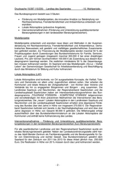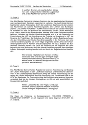 Drucksache 15/287 (15/235) Landtag des Saarlandes - 15. Wahlperiode - Die Entscheidung der Landkreise und des Regionalverbandes das Adolf-Bender- Zentrum mit der Beratertätigkeit im Rahmen des Bundesprogramms zu beauftragen, wurde durch das Sozial- und Familienministerium in der zweiten Förderphase mitge- tragen. Die in der ersten Förderphase aufgebauten bewährten Strukturen und Koope- rationen wurden durch das Bundesfamilienministerium bestätigt. Aus den genannten Gründen sind für die Weiterführung des Bundesprogramms ab 01.01.2011 keine neuen freien Träger angefragt worden. Eine wesentliche Veränderung der Beratungs- und Netzwerkstruktur ist für die Weiterentwicklung des Bundesprogramms nicht zielfüh- rend. Erhält die Einrichtung über die gegebenenfalls po- sitiv beantworteten Fragen 2 und 3 zusätzlich eine institutionelle oder Projektförderung? Wenn ja, in welcher Höhe und für welche Tätigkeit? Zu Frage 6: Für das das Modellprojekt „Medien für Toleranz und Verständigung“ erhält das Adolf- Bender-Zentrum für den Zeitraum 01.09.2011 bis 31.03.2014 eine Ko-Finanzierung des Landes. Der Träger konnte für das Modellprojekt „Medien für Toleranz und Ver- ständigung“ Bundesmittel im Rahmen des Kinder- und Jugendhilfeplan (KJP) einwer- ben. Lt. Kosten- und Finanzierungsplan liegen für die Laufzeit des Modellprojektes vom 01.09.11 bis 31.03.14 Gesamtkosten in Höhe von 436.959,21 € vor. Dem Adolf- Bender-Zentrum wurde eine Anteilsfinanzierung des Landes für den gesamten Förder- zeitraum in Höhe von max. 40.000 € in Aussicht gestellt. Für 2011 wurde eine Anteils- finanzierung in Höhe von 15.000 €, für 2012 in Höhe von 10.000 € bewilligt. Für das Haushaltsjahr 2013 sind finanzielle Mittel in Höhe von 10.000 € und für das Haushalts- jahr 2014 in Höhe von 5.000 € als Kofinanzierung für das Adolf-Bender-Zentrum in Aussicht gestellt worden. Das Projekt richtet sich an Kinder im Grundschulbereich (ab 9 Jahren), Jugendliche ab 14 Jahren, insbesondere aus benachteiligten Verhältnissen, an Jugendliche mit Migra- tionshintergrund und Jugendliche zwischen 16 und 27 Jahren, die ein Freiwilliges So- ziales Jahr absolvieren, sowie Fachkräfte und Multiplikatoren im Kinder- und Jugend- bereich. Ziele sind die Stärkung von Medienkompetenzen und zugleich die Stärkung von Kompetenzen politischer und kultureller Bildung insbesondere die Bekämpfung von rechtsextremen und fremdenfeindlichen Tendenzen. Im Zusammenhang mit den Mordtaten des Nationalsozialistischen Untergrundes sind alle Fraktionen des Landtages im Saarland übereingekommen, ein Zeichen gegen Rechtsextremismus zu setzen. Die Mittel im Kampf gegen Rechtsextremismus sind für das Haushaltsjahr 2012 um 100.000 € erhöht worden. Das Adolf-Bender-Zentrum hat für das Projekt „Zeichen setzen gegen Rechtsextremismus“ eine einmalige Zuwendung in Höhe von 28.595,59 € erhalten. Das Projekt ist die Weiterentwicklung der Ausstel- lung „Hass ist ihre Attitüde“, die bereits seit 2006 existiert. Im Zuge der Neukonzeption sind die dort verwendeten Tafeln überarbeitet und neu gedruckt worden, die Texte und Bilder wurden auf den neuesten Stand gebracht, um aktuelle Tendenzen im Bereich des Rechtsextremismus und Antisemitismus aufzuzeigen. -6-