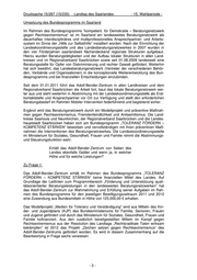 Drucksache 15/287 (15/235) Landtag des Saarlandes - 15. Wahlperiode - In welchen Gremien, die saarländischen Ministe- rien oder nachgeordneten Behörden zugeordnet sind, ist das Adolf-Bender-Zentrum vertreten? Zu Frage 2: Das Adolf-Bender-Zentrum ist in keinem Gremium, das den saarländischen Ministerien oder nachgeordneten Behörden zugeordnet ist, vertreten. Das Adolf-Bender-Zentrum begleitet die Lokalen Aktionspläne (LAP) des Landkreises Saarlouis und des Landkrei- ses Neunkirchen als externe Koordinierungsstelle. Die Leitlinien des Bundespro- gramms „TOLERANZ FÖRDERN – KOMPETENZ STÄRKEN“ der Lokalen Aktionsplä- ne schreiben vor, dass „die Kommune die Verantwortung für den Lokalen Aktionsplan trägt“. Hierzu bildet sie ein Ämternetzwerk, welches eine lokale Koordinierungsstelle bestimmt. Aufgaben der lokalen Koordinierungsstelle sind u. a. die Steuerung und Fortschreibung der LAP, die Koordinierung der Projekte zur Umsetzung im LAP, die Beratung der Projektträger, die Begleitung der Arbeit des Lokalen Begleitausschusses etc.. Zur Unterstützung der lokalen Koordinierungsstelle in der Kommune kann eine externe Koordinierungsstelle bei einem Träger eingerichtet werden. Die externe Koor- dinierungsstelle kann im Rahmen eines Einzelprojektes mit bis zu 20.000 € der Bun- desmittel unterstützt werden. Die Dauer der Förderung ist auf insgesamt drei Jahre begrenzt und muss jährlich neu durch die externe Koordinierungsstelle, beim jeweiligen Lokalen Aktionsplan beantragt werden und wird durch den Begleitausschuss beschie- den. Wird für diese Tätigkeit(en) ein Honorar, eine Pau- schale oder eine sonst wie (ggf. vertraglich festge- haltene) finanzielle Leistung erbracht? Wenn ja, in welcher Höhe, auf welcher vertraglichen Grundla- ge und für welche Leistung? Zu Frage 3: Das Adolf-Bender-Zentrum hat die Aufgaben der externen Koordinierung und Beratung der Lokalen Aktionspläne in den Landkreisen Saarlouis und Neunkirchen übernom- men. In der Landeshauptstadt Saarbrücken erfolgt die externe Koordinierung und Be- ratung des Lokalen Aktionsplans durch die Forschungs- und Transferstelle GIM an der HTW des Saarlandes. Die Entscheidung über die Einrichtung einer externen Koordinie- rungsstelle liegt bei den Lokalen Aktionsplänen vor Ort und wird ausschließlich aus Bundesmitteln gefördert. Welche Laufzeit hat die unter Frage 2 und 3 gege- benenfalls jeweils aufgeführte Mitarbeit in Gremien und die vertraglich festgehaltene(n) Leistung(en)? Zu Frage 4: Die Dauer der Förderung im Bundesprogramm „TOLERANZ FÖRDERN – KOMPETENZ STÄRKEN“ ist auf insgesamt drei Jahre begrenzt (01.01.2011 bis 31.12.2013). -4-
