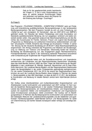 Drucksache 15/287 (15/235) Landtag des Saarlandes - 15. Wahlperiode - Gab es für die gegebenenfalls positiv beantworte- ten Fragen 2, 3 und 4 eine Ausschreibung und wenn ja, welche anderen Einrichtungen hatten sich beworben und welches waren die Kriterien für die Erteilung des Auftrags / Zuschlags? Zu Frage 5: Das Programm „TOLERANZ FÖRDERN – KOMPETENZ STÄRKEN“ setzt auf Förde- rung und Unterstützung qualitätsorientierter Beratungsleistungen in den landesweiten Beratungsnetzwerken. Bei dem Programm handelt es sich um eine Fortsetzung von „Vielfalt tut gut“ und „kompetent. für Demokratie“, das von 2007-2010 vom BMFSFJ gefördert wurde. Ein Resultat der letzten Förderphase sind erste Grundsätze von Standards qualitätsorientierter Beratung, die nun ausgebaut, verfeinert und weiter ent- wickelt werden sollen. Dies geschieht aufgrund der Beschlussempfehlung und des Be- richtes des Ausschusses für Familie, Senioren, Frauen und Jugend des Bundestags „Programme zur Bekämpfung von politischem Extremismus weiterentwickeln und stär- ken“ (Drucksache 17/5435; Annahme des Antrags auf Drucksache 17/4432). In seiner 130. Sitzung hat der Deutsche Bundestag am 29.09.2011 diese Beschlussempfehlung angenommen. Der Antrag unterstützt die Programme und Initiativen der Bundesregie- rung zur Stärkung von Toleranz und Demokratie. Gleichzeitig fordert der Deutsche Bundestag die Bundesregierung auf, das Engagement gegen Rechtsextremismus, Fremdenfeindlichkeit und damit in der Verbindung stehende Phänomene fortzuführen unter Einbeziehung der Ergebnisse der Programmevaluation weiterzuentwickeln. In der ersten Förderperiode haben sich die SozialdezernentInnen und Jugendamts- vertreterInnen der Landkreise und des Regionalverbandes Saarbrücken verständigt, dass das Adolf-Bender-Zentrum (ABZ) als freier Träger die Wahrnehmung der Berater- tätigkeiten in den Landkreisen St. Wendel, Saarlouis, Neunkirchen und im Saar-Pfalz- Kreis übernimmt. Der Landkreis Merzig-Wadern und der Regionalverband Saarbrücken haben die Beratertätigkeit in der ersten Förderperiode eigenständig wahrgenommen. Für die zweite Förderperiode (2011 bis 2013) hat sowohl der Regionalverband Saar- brücken als auch der Landkreis Merzig-Wadern diese Aufgabe im Rahmen der jeweils ¼- Beratungsstelle an das ABZ übertragen, so dass ab dem 01.01.2011 die landeswei- te Koordination und Beratung im lokalen Bereich zentral beim Adolf-Bender-Zentrum erfolgt. Der Aufbau eines interdisziplinären und multiprofessionellen Ansprechpartner- und Arbeitssystem wurde kontinuierlich und systematisch seit 2007 verfolgt. Im Kern wur- den die bewährten Beratungsstrukturen in der zweiten Förderphase beibehalten. Das Leitziel des Beratungsnetzwerks, ein interdisziplinäres Arbeits- und Ansprechpartner- system mit staatlichen Stellen und nichtstaatlichen Institutionen und Organisationen sowie Einzelpersonen aufzubauen, bleibt unverändert. Der Ausbau soll im Bewilli- gungszeitraum im Rahmen des Bundesprogramms kontinuierlich und systematisch von den beteiligten Akteuren der Landeskoordinierungsstelle und der etablierten und quali- fizierten Fachberatungsstellen (Adolf-Bender-Zentrum und Beratungsstelle für Opfer von Diskriminierung und rechter Gewalt) konsequent weiter verfolgt und verstetigt wer- den. -5-