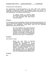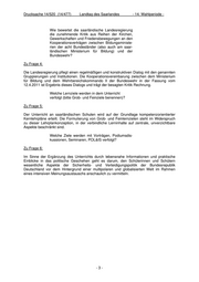 Drucksache 14/520 (14/477) Landtag des Saarlandes - 14. Wahlperiode - Wie bewertet die saarländische Landesregierung die zunehmende Kritik aus Reihen der Kirchen, Gewerkschaften und Friedensbewegungen an den Kooperationsverträgen zwischen Bildungsministe- rien der acht Bundesländer (also auch am saar- ländischen Ministerium für Bildung) und der Bundeswehr? Zu Frage 4: Die Landesregierung pflegt einen regelmäßigen und konstruktiven Dialog mit den genannten Gruppierungen und Institutionen. Die Kooperationsvereinbarung zwischen dem Ministerium für Bildung und dem Wehrbereichskommando II der Bundeswehr in der Fassung vom 12.4.2011 ist Ergebnis dieses Dialogs und trägt der besagten Kritik Rechnung. Welche Lernziele werden in dem Unterricht verfolgt (bitte Grob- und Feinziele benennen)? Zu Frage 5: Der Unterricht an saarländischen Schulen wird auf der Grundlage kompetenzorientierter Kernlehrpläne erteilt. Die Formulierung von Grob- und Feinlernzielen steht im Widerspruch zu dieser Lehrplankonzeption, in der verbindliche Lerninhalte auf zentrale, unverzichtbare Aspekte beschränkt sind. Welche Ziele werden mit Vorträgen, Podiumsdis- kussionen, Seminaren, POL&IS verfolgt? Zu Frage 6: Im Sinne der Ergänzung des Unterrichts durch lebensnahe Informationen und praktische Einblicke in das politische Geschehen geht es darum, den Schülerinnen und Schülern wesentliche Aspekte der Sicherheits- und Verteidigungspolitik der Bundesrepublik Deutschland vor dem Hintergrund einer multipolaren und globalisierten Welt im Rahmen eines intensiven Meinungsaustauschs anschaulich zu vermitteln. -3-