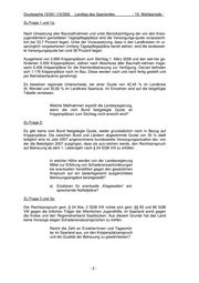 Drucksache 15/501 (15/359) Landtag des Saarlandes - 15. Wahlperiode - Zu Frage 1 und 1a: Nach Umsetzung aller Baumaßnahmen und unter Berücksichtigung der von den Kreis- jugendämtern gemeldeten Tagespflegeplätze wird die Versorgungs-quote voraussicht- lich bei 33,7 Prozent liegen. Unter der Voraussetzung, dass in den Landkreisen im ur- sprünglich vorgesehenen Umfang Tagespflegeplätze bereit stehen, wird die landeswei- te Versorgungsquote bei rund 36 Prozent liegen. Ausgehend von 2.899 Krippenplätzen zum Stichtag 1. März 2008 und den seit-her ge- förderten 3.509 Krippenplätzen, stehen nach Abschluss aller Baumaß-nahmen insge- samt 6.408 Krippenplätze für die Kleinkindbetreuung zur Verfügung. Derzeit befinden sich 1.176 Krippenplätze noch im Bau. Diese werden nach und nach fertig gestellt und per Betriebserlaubnis genehmigt. Es bestehen regionale Unterschiede, bei einer Quote von 42,45 % im Landkreis St. Wendel und 30,82 % im Landkreis Saarlouis. Im Einzelnen wird auf die beigefügte Tabelle verwiesen. Welche Maßnahmen ergreift die Landesregierung, wenn die vom Bund festgelegte Quote an Krippenplätzen zum Stichtag nicht erreicht wird? Zu Frage 2: Es gibt keine vom Bund festgelegte Quote, weder grundsätzlich noch in Bezug auf Krippenplätze. Die zwischen Bund und Ländern abgestimmte Quote von 35 % stellt lediglich eine im Jahr 2007 angenommene bundesweite Versorgungssituation dar, von der die Beteiligten 2007 ausgingen, dass sie aus-reichen werde, den Rechtsanspruch auf Betreuung ab dem 1. Lebensjahr nach § 24 SGB VIII zu erfüllen. In welcher Höhe werden von der Landesregierung Mittel zur Erfüllung von Schadenersatzforderungen bei eventuellen Verstößen gegen den gesetzlichen Anspruch auf ein bedarfsgerecht ausgerichtetes Betreuungsangebot bereitgestellt? a) Existieren für eventuelle „Klagewellen“ ent- sprechende Notfallpläne? Zu Frage 3 und 3a: Der Rechtsanspruch gem. § 24 Abs. 2 SGB VIII richtet sich gem. §§ 85 und 86 SGB VIII gegen die örtlichen Träger der öffentlichen Jugendhilfe, im Saarland somit gegen die Kreise und den Regionalverband Saarbücken. Aus diesem Grunde hat das Land keine Vorsorge wegen Schadenersatzansprüchen zu treffen. Reicht die Zahl an Erzieher/innen und Tagesmüt- ter im Saarland aus, um den Krippenplatzanspruch und die Qualität der Betreuung zu gewährleisten? -2-