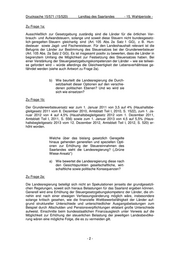 Drucksache 15/571 (15/520) Landtag des Saarlandes - 15. Wahlperiode - Zu Frage 1a: Ausschließlich zur Gesetzgebung zuständig sind die Länder für die örtlichen Ver- brauch- und Aufwandsteuern, solange und soweit diese Steuern nicht bundesgesetz- lich geregelten Steuern gleichartig sind (Art. 105 Abs. 2a Satz 1 GG), z. B. Hun- desteuer sowie Jagd- und Fischereisteuer. Für den Landeshaushalt relevant ist die Befugnis der Länder zur Bestimmung des Steuersatzes bei der Grunderwerbsteuer (Art. 105 Abs. 2a Satz 2 GG). Es ist insgesamt positiv zu bewerten, dass die Länder in begrenztem Umfang die Möglichkeit zur Festsetzung des Steuersatzes haben. Bei einer Verstärkung der Steuergesetzgebungskompetenzen der Länder – wie sie teilwei- se gefordert wird – würde allerdings die Gleichwertigkeit der Lebensverhältnisse ge- fährdet werden (siehe auch Antwort zu Frage 2a). b) Wie beurteilt die Landesregierung die Durch- setzbarkeit dieser Optionen auf den verschie- denen politischen Ebenen? Und wo wird sie sich wie einsetzen? Zu Frage 1b: Der Grunderwerbsteuersatz war zum 1. Januar 2011 von 3,5 auf 4% (Haushaltsbe- gleitgesetz 2011 vom 8. Dezember 2010, Amtsblatt Teil I, 2010, S. 1522), zum 1. Ja- nuar 2012 von 4 auf 4,5% (Haushaltsbegleitgesetz 2012 vom 1. Dezember 2011, Amtsblatt Teil I, 2011, S. 556) sowie zum 1. Januar 2013 von 4,5 auf 5,5% (Haus- haltsbegleitgesetz 2013 vom 12. Dezember 2012, Amtsblatt Teil I, 2012, S. 520) er- höht worden. Welche über das bislang gesetzlich Geregelte hinaus gehenden generellen und speziellen Opti- onen zur Erhöhung der Steuereinnahmen des Saarlandes sieht die Landesregierung? („Grüne Wiese-Ansatz“) a) Wie bewertet die Landesregierung diese nach den Gesichtspunkten gesellschaftliche, wirt- schaftliche sowie politische Konsequenzen? Zu Frage 2a: Die Landesregierung beteiligt sich nicht an Spekulationen jenseits der grundgesetzli- chen Regelungen, soweit sich hieraus Belastungen für das Saarland ergeben können. Generell wird eine Erhöhung der Steuergesetzgebungskompetenz der Länder, die oh- nehin erst nach einer etwaigen Verfassungsänderung möglich wäre, insbesondere solange kritisch gesehen, wie die finanzielle Wettbewerbsfähigkeit der Länder auf- grund struktureller Unterschiede und unterschiedlicher Ausgangsbelastungen zum Beispiel durch Altschulden und Pensionsverpflichtungen eklatant große Unterschiede aufweist. Einschnitte beim bundesstaatlichen Finanzausgleich unter Verweis auf die Möglichkeit zur Erhöhung der steuerlichen Belastung der jeweiligen Landesbevölke- rung wären eine mögliche Folge, die es zu vermeiden gilt. -2-