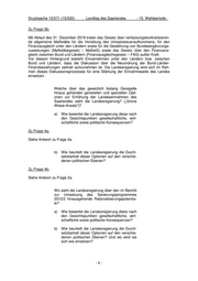 Drucksache 15/571 (15/520) Landtag des Saarlandes - 15. Wahlperiode - Zu Frage 3b: Mit Ablauf des 31. Dezember 2019 treten das Gesetz über verfassungskonkretisieren- de allgemeine Maßstäbe für die Verteilung des Umsatzsteueraufkommens, für den Finanzausgleich unter den Ländern sowie für die Gewährung von Bundesergänzungs- zuweisungen (Maßstäbegesetz – MaßstG) sowie das Gesetz über den Finanzaus- gleich zwischen Bund und Ländern (Finanzausgleichsgesetz – FAG) außer Kraft. Vor diesem Hintergrund besteht Einvernehmen unter den Ländern bzw. zwischen Bund und Ländern, dass die Diskussion über die Neuordnung der Bund-Länder- Finanzbeziehungen zeitnah aufzunehmen ist. Die Landesregierung wird sich im Rah- men dieses Diskussionsprozesses für eine Stärkung der Einnahmeseite des Landes einsetzen. Welche über das gesetzlich bislang Geregelte hinaus gehenden generellen und speziellen Opti- onen zur Erhöhung der Landeseinnahmen des Saarlandes sieht die Landesregierung? („Grüne Wiese-Ansatz“)? a) Wie bewertet die Landesregierung diese nach den Gesichtspunkten gesellschaftliche, wirt- schaftliche sowie politische Konsequenzen? Zu Frage 4a: Siehe Antwort zu Frage 2a. b) Wie beurteilt die Landesregierung die Durch- setzbarkeit dieser Optionen auf den verschie- denen politischen Ebenen? Zu Frage 4b: Siehe Antwort zu Frage 2a. Wo sieht die Landesregierung über den im Bericht zur Umsetzung des Sanierungsprogrammes 2012/2 hinausgehende Rationalisierungspotentia- le? a) Wie bewertet die Landesregierung diese nach den Gesichtspunkten gesellschaftliche, wirt- schaftliche sowie politische Konsequenzen? b) Wie beurteilt die Landesregierung die Durch- setzbarkeit dieser Optionen auf den verschie- denen politischen Ebenen? Und wo wird sie sich wie einsetzen? -4-
