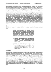 Drucksache 15/294 (15/247) Landtag des Saarlandes - 15. Wahlperiode - Daneben sind lediglich in einigen wenigen individuell bedingten Fällen geringfügige stellentechnische Veränderungen erfolgt. Dies war beispielsweise im Jahr 2010 ein Stellentausch A 6 gegen A 8 zwischen der ordentlichen Gerichtsbarkeit und der Sozi- algerichtsbarkeit, um im mittleren Justizdienst der Sozialgerichtsbarkeit adäquate Be- förderungsperspektiven zu bieten. Im Bereich der Richterinnen und Richter sowie Staatsanwältinnen und Staatsanwälte hat es keine „Stellenhebungsprogramme“ gegeben. Zu a): Im Bereich der Richterinnen und Richter sowie Staatsanwältinnen und Staatsanwälte sind keine „Stellenhebungsprogramme“ geplant. Im Übrigen wird derzeit – korrespon- dierend zu der Antwort unter Ziffer 1 a) – beraten, in welchem Umfang Stellenhebun- gen erfolgen werden (ungeachtet der Frage, ob bzw. wie sich die in diesem Zusam- menhang zu beachtenden Vorgaben über die Einhaltung von Stellenobergrenzen ver- ändern). Zu b): Zur Durchführung von Beförderungsterminen wird jedem Ressort für jedes Haushalts- jahr ein Beförderungsbudget zur Verfügung gestellt. Zwar wurde dieses Budget in den Haushaltsjahren 2011 und 2012 gegenüber den Vorjahren im Grundsatz halbiert. Den- noch wurde speziell für die Bereiche des einfachen und mittleren Justizdienstes im Haushaltsjahr 2011 ein Sonderbeförderungsvolumen zugeteilt, so dass im Jahr 2012 der status quo im Grundsatz gehalten werden konnte. Wie hat sich die Verfahrensdauer in der ordentli- chen Gerichtsbarkeit, der Verwaltungsgerichtsbar- keit und den Fachgerichten (Sozialgerichtsbarkeit, Finanzgerichtsbarkeit und Arbeitsgerichtsbarkeit), insbesondere auch im Hinblick auf die Verfah- rensdauer und die aufzuarbeitenden Rückstands- zahlen an saarländischen Nachlassgerichten, seit 2004 entwickelt? Bitte nach Gerichtsbarkeiten auf- schlüsseln und Verfahrensdauer und -rückstände im Rahmen der Mitteilungspflicht und bei der Ertei- lung von Erbscheinen durch die saarländischen Nachlassgerichte gesondert darstellen. a) Wie stellt sich die Entwicklung der Eingangs- zahlen bei den einzelnen Gerichtszweigen und der Staatsanwaltschaft seit 2004 dar, und wie hat die Landesregierung hierauf insbe- sondere durch Umorganisation und Schaffung neuer Stellen reagiert? b) Wie lang sind die Bearbeitungs-, Mitteilungs- zeiten in Erbfällen und Erledigungszeiten bei saarländischen Nachlassgerichten durch- schnittlich? c) Warum kam es in der Vergangenheit in vielen Nachlassfällen zu unverhältnismäßig langen Bearbeitungszeiten? -5-