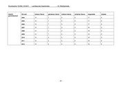 Drucksache 15/294 (15/247) Landtag des Saarlandes - 15. Wahlperiode - Amtsgerichte Familiensachen Jahr 2004 2005 2006 2007 2008 2009 2010 2011 Eingänge 9.437 9.007 9.427 9.238 10.038 10.622 11.457 11.094 Erledigungen 9.545 9.911 9.231 9.658 9.877 10.227 11.098 11.498 Endbestand 6.715 5.784 5.861 5.455 5.617 6.014 6.371 5.967 Jahr 2004 2005 2006 2007 2008 2009 2010 2011 Monate (Ehesa) 9,3 10,1 7,4 7,3 7 6,4 5,8 5,7 Monate (so.F-sa) 6,4 6,5 Familiensachen - Sonstige Geschäfte - (Eingänge) Jahr 2004 2005 2006 2007 2008 2009 2010 2011 vereinfachte Unterhalts- ver- 280 280 166 192 258 238 170 169 fahren sonstige FH- 6 22 50 3 5 4 7 12 Verfahren Strafsachen Jahr 2004 2005 2006 2007 2008 2009 2010 2011 Eingänge 9.813 8.836 9.421 10.262 10.939 9.646 10.147 10.051 Erledigungen 9.447 9.410 8.651 10.135 11.283 10.546 10.142 9.951 Endbestand 3.906 3.436 4.116 4.242 4.048 3.151 3.244 3.342 Jahr 2004 2005 2006 2007 2008 2009 2010 2011 Monate 4,2 4,7 5,4 5,5 5,8 5,4 4,8 4,8 Bußgeldsachen Jahr 2004 2005 2006 2007 2008 2009 2010 2011 Eingänge 4.186 3.824 3.751 3.321 3.476 3.759 3.925 3.841 Erledigungen 4.367 3.692 3.465 3.312 3.390 3.701 4.138 3.970 Endbestand 756 888 1.095 1.104 1.190 1.248 1.035 906 Jahr 2004 2005 2006 2007 2008 2009 2010 2011 Monate 3,3 2,1 2,2 2,4 3,5 4,8 3,3 3,2 - 24 -