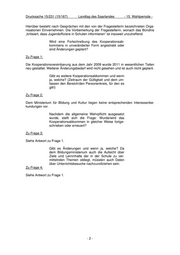 Drucksache 15/231 (15/167) Landtag des Saarlandes - 15. Wahlperiode - Hierüber besteht nach Gesprächen mit den von der Fragestellerin bezeichneten Orga- nisationen Einvernehmen. Die Vorbemerkung der Fragestellerin, wonach das Bündnis „kritisiert, dass Jugendoffiziere in Schulen informieren“ ist insoweit unzutreffend. Wird eine Fortschreibung des Kooperationsab- kommens in unveränderter Form angestrebt oder sind Änderungen geplant? Zu Frage 1: Die Kooperationsvereinbarung aus dem Jahr 2009 wurde 2011 in wesentlichen Teilen neu gestaltet. Weiterer Änderungsbedarf wird nicht gesehen und ist auch nicht geplant. Gibt es weitere Kooperationsabkommen und wenn ja, welche? (Zeitraum der Gültigkeit und dem um- fassen den Bereich/den Personenkreis, für den es gilt!) Zu Frage 2: Dem Ministerium für Bildung und Kultur liegen keine entsprechenden Interessenbe- kundungen vor. Nachdem die allgemeine Wehrpflicht ausgesetzt wurde, stellt sich die Frage: Wurde/wird das Kooperationsabkommen in gleicher Weise fortge- schrieben oder erneuert? Zu Frage 3: Siehe Antwort zu Frage 1. Gibt es Änderungen und wenn ja, welche? Da dem Bildungsministerium auch die Aufsicht über Ziele und Lerninhalte der in der Schule zu ver- mittelnden Themen obliegt, müssten auch Daten über Unterrichtsbesuche nachzuvollziehen sein. Zu Frage 4: Siehe Antwort zu Frage 1. -2-