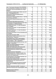 Drucksache 14/194 (14/113) Landtag des Saarlandes - 14. Wahlperiode - Europäisches Tourismus Institut an der Universi- 6 1 0 1 0,0 tät Trier GmbH - Aufsichtsrat - Expertengruppe f.Hochschul-, Dienst-, Besol- 16 1 1 0 100,0 dungs- u.Versorgungsrecht Expertenkreis Stoffe des LAWA-AO 19 1 0 1 0,0 Fachausschuss Frühe Kindheit der AGJ 16 1 0 1 0,0 Fachausschuss Recht des Länderausschusses 23 1 0 1 0,0 für Atomenergie Fachausschuss Strahlenverordnung 25 1 0 1 0,0 Fachausschuss Technisches Kraftfahrwesen 25 1 0 1 0,0 Fachgremium "Elektrotechnik" der Industrie- und 8 1 0 1 0,0 Handelskammer des Saarlandes für Sachver- ständigenwesen (alle Bundesländer) Fachhochschulinstitut für Technologietransfer 10 2 1 1 50,0 (FITT) - Kuratorium Fachinformationssystem Karlsruhe - Gesellschaf- 22 1 0 1 0,0 terversammlung Fachinformationssystem Landwirtschaft (FIS) 16 1 0 1 0,0 Fachkammer des Verwaltungsgerichts des Saar- 20 3 1 2 33,3 landes gem. § 114 SPersVG - Vorschl. Stelle: Gewerkschaften Fachkammer des Verwaltungsgerichts des Saar- 20 2 1 1 50,0 landes gem. § 114 SPersVG - Vorschl. Stelle: Oberste Landesbehörden und kommunale Spit- zenverbände Fachkommission Hochschulzugangsprüfung 5 2 1 1 50,0 Fachkreis Geo-Schutz 22 1 0 1 0,0 Fachreferenten Integr. Ländliche Entwicklung 11 1 0 1 0,0 Fachsenat des Oberverwaltungsgerichts des 10 1 1 0 100,0 Saarlandes gem. § 114 SPersVG - Vorschl. Stel- le: Gewerkschaften Fachsenat des Oberverwaltungsgerichts des 10 1 1 0 100,0 Saarlandes gem. § 114 SPersVG - Vorschl. Stel- le: Oberste Landesbehörden und kommunale Spitzenverbände Familienbildungsreferenten und –Referentinnen 17 1 0 1 0,0 des Bundes und der Länder Flughafen Saarbrücken GmbH - Aufsichtsrat - 6 3 0 3 0,0 Fluglärmkommission für den internationalen Ver- 14 1 0 1 0,0 kehrsflughafen Saarbrücken-Ensheim Förderverein INFO-Institut - Vorstand 5 1 1 0 100,0 Forschungsbeirat der HTW 12 2 0 2 0,0 Forschungsbeirat Hochschule für Technik und 10 1 0 1 0,0 Wirtschaft des Saarlandes Forstchefkonferenz 17 1 0 1 0,0 Forstpolitikreferenten des Bundes und der Län- 17 2 0 2 0,0 der Frankreichzentrum der Universität des Saarlan- 13 1 0 1 0,0 des - Beirat Fraunhofer Ausschuss 17 1 1 0 100,0 Freiwillige Selbstkontrolle der Filmwirtschaft - 16 1 0 1 0,0 FSK GA 1/DIBT 25 1 0 1 0,0 - 21 -